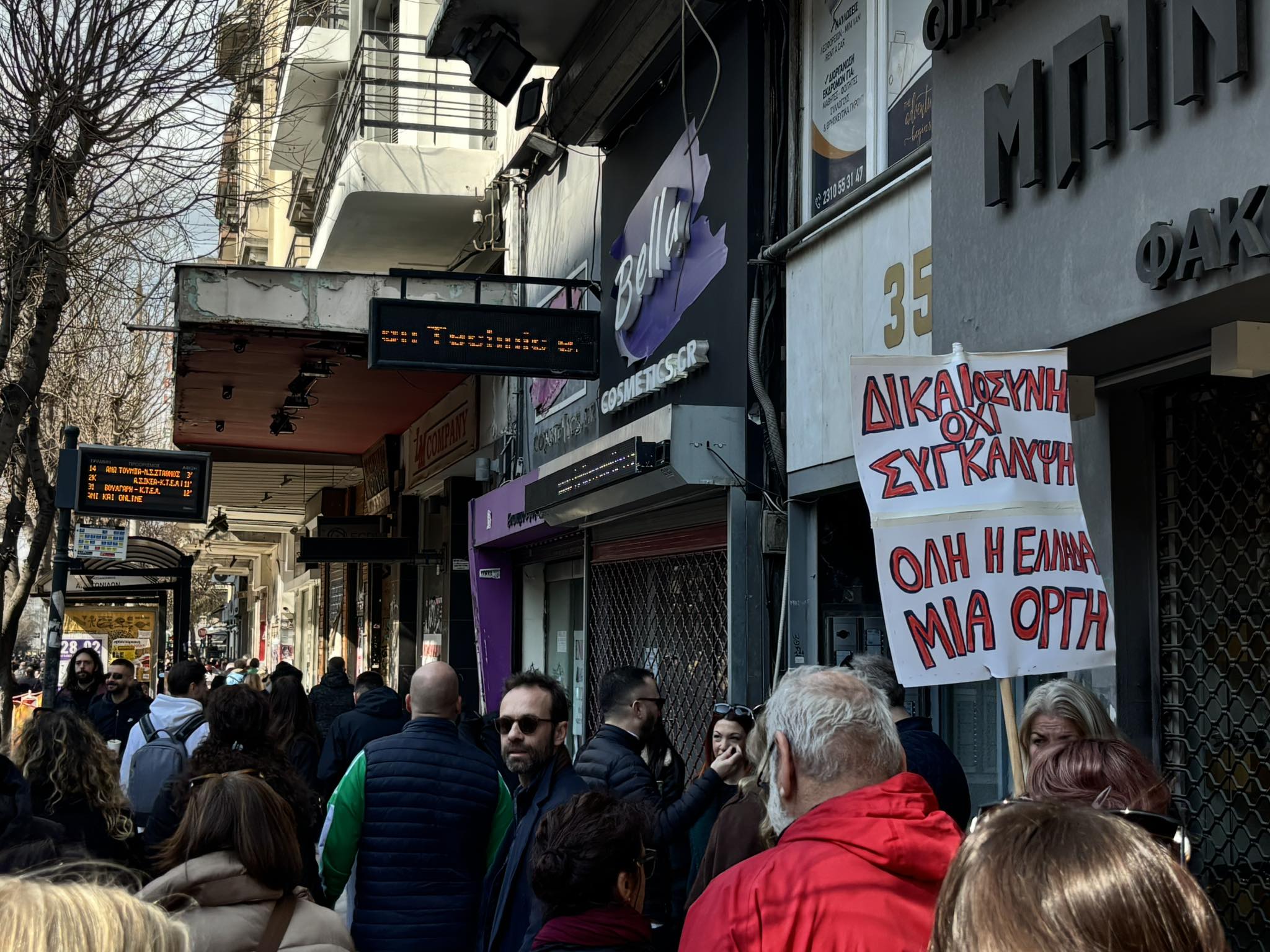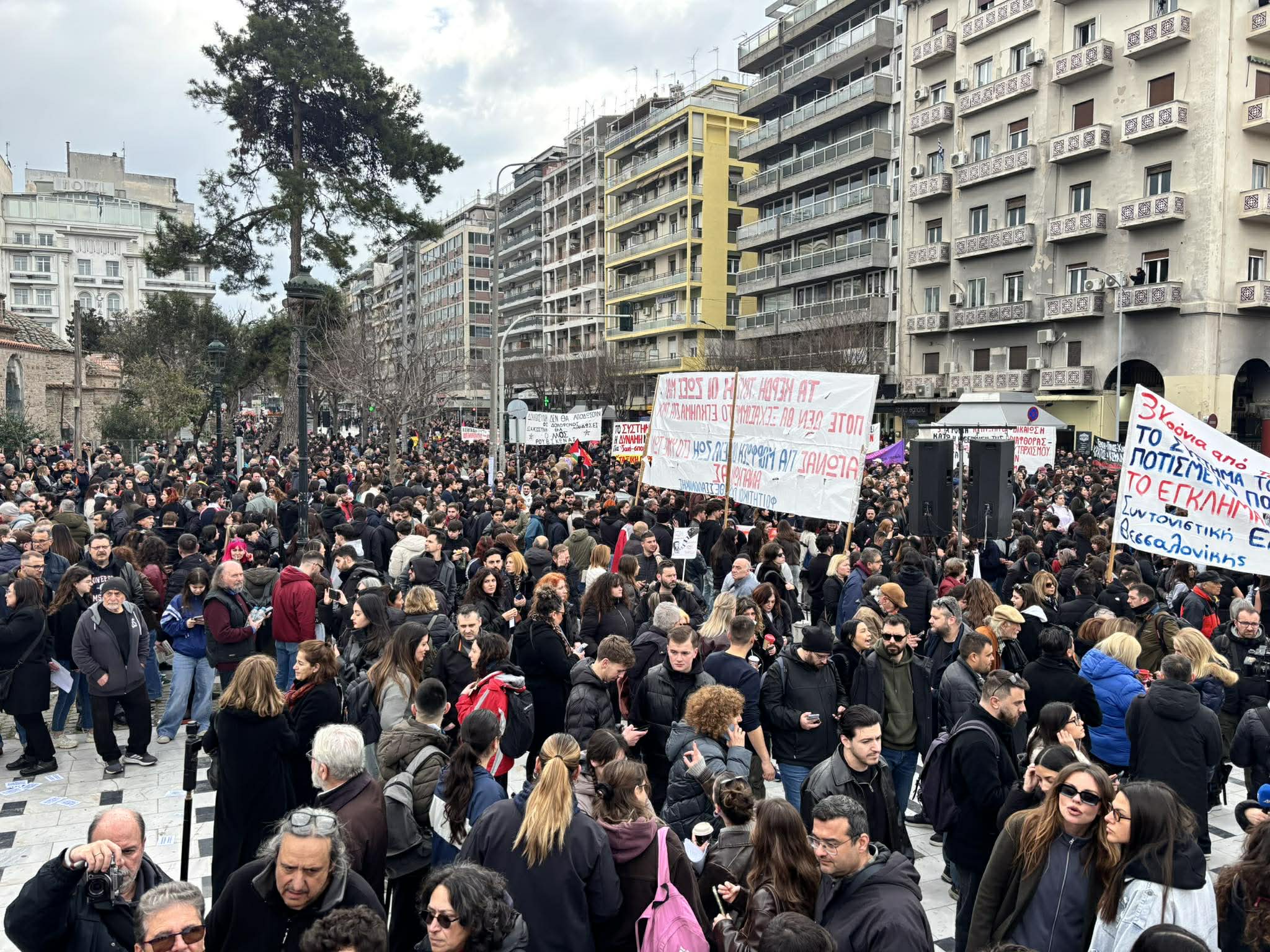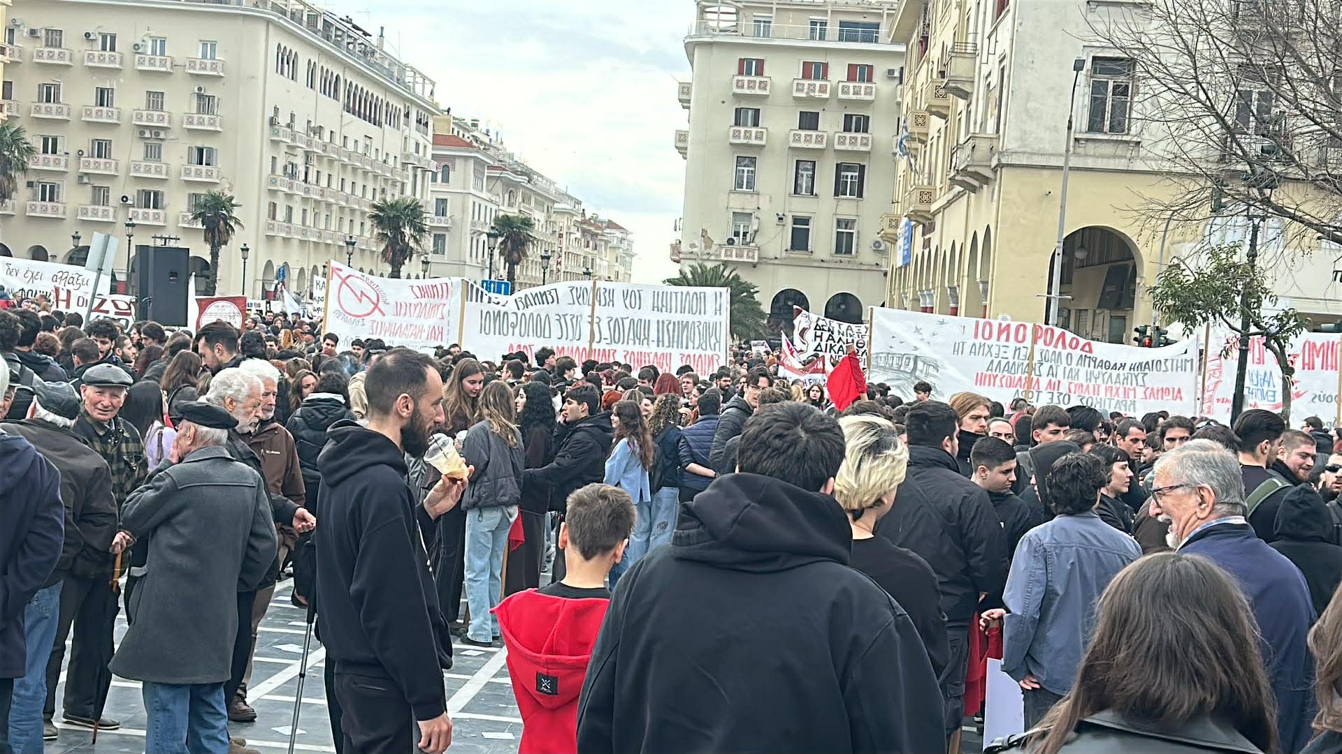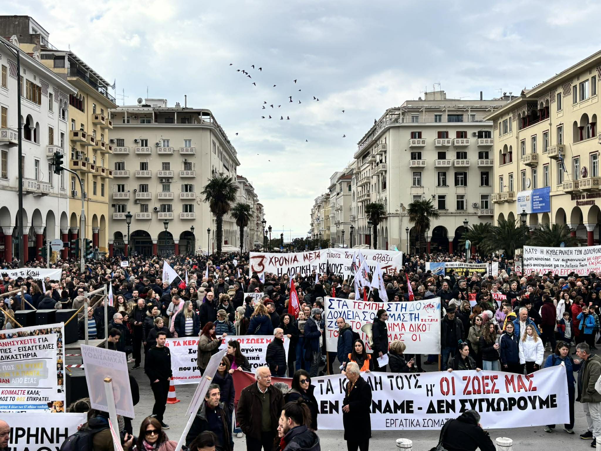 Τρία χρόνια μετά το σιδηροδρομικό δυστύχημα στα Τέμπη, που στέρησε τη ζωή σε 57 ανθρώπους, όταν το επιβατικό τρένο Intercity 62 συγκρούστηκε με την εμπορική αμαξοστοιχία 63503, το βράδυ της 28ης Φεβρουαρίου 2023, εκατοντάδες κόσμου, διαφορετικών ηλικιών, έχουν συγκεντρωθεί στο κέντρο της Θεσσαλονίκης, και ενωμένοι ζητούν δικαιοσύνη, δείχνοντας πως κανείς δεν ξέχασε.