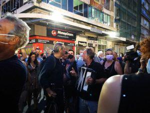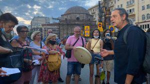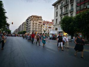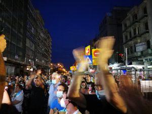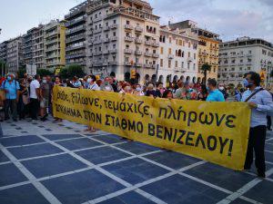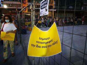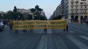 Τη συγκέντρωση της Κίνησης Πολιτών στο άγαλμα Βενιζέλου ακολουθεί τώρα η πορεία και η περικύκλωση του εργοταξίου του σταθμού Βενιζέλου.