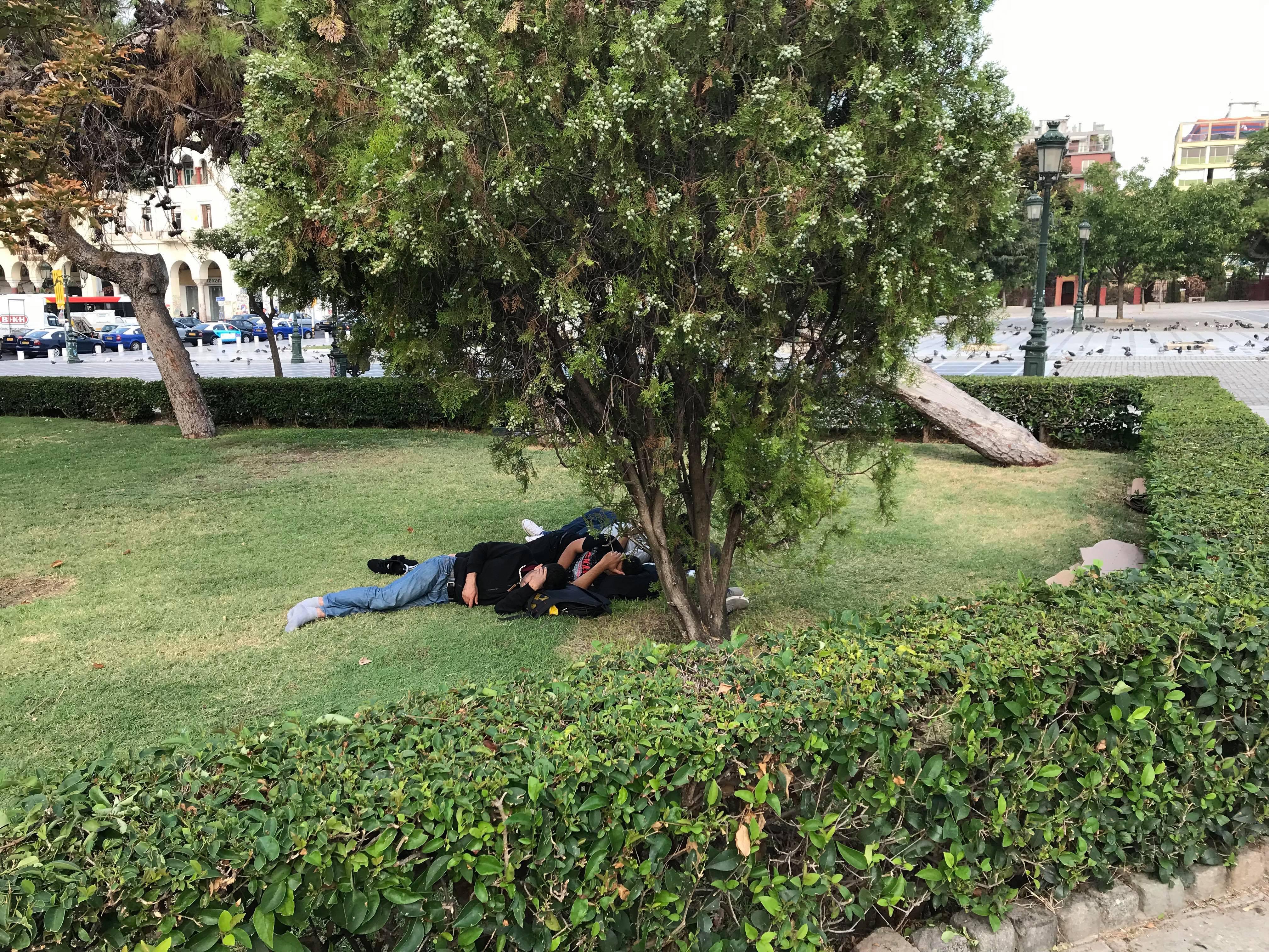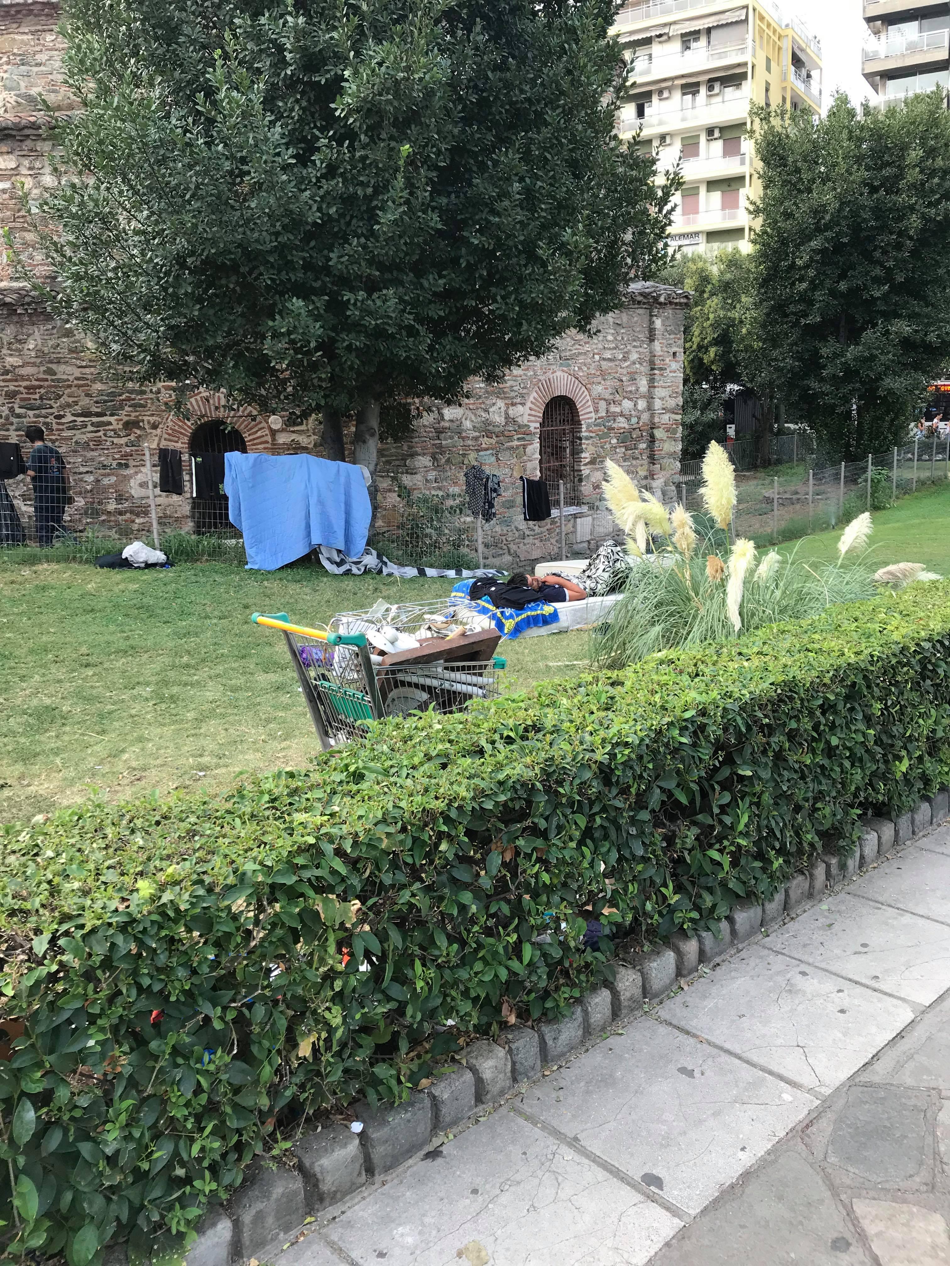 Παρασκευή απόγευμα. Σε μια πόλη που φορά τα καλά της λόγω ΔΕΘ. Σε ένα από το κεντρικότερα σημεία της. Σε ένα από τα σπουδαιότερα μνημεία της. Κάποιοι άνθρωποι έχουν βρει καταφύγιο. Εικόνες που σοκάρουν, στην απόληξη Αριστοτέλους. Μια Παρασκευή απόγευμα.