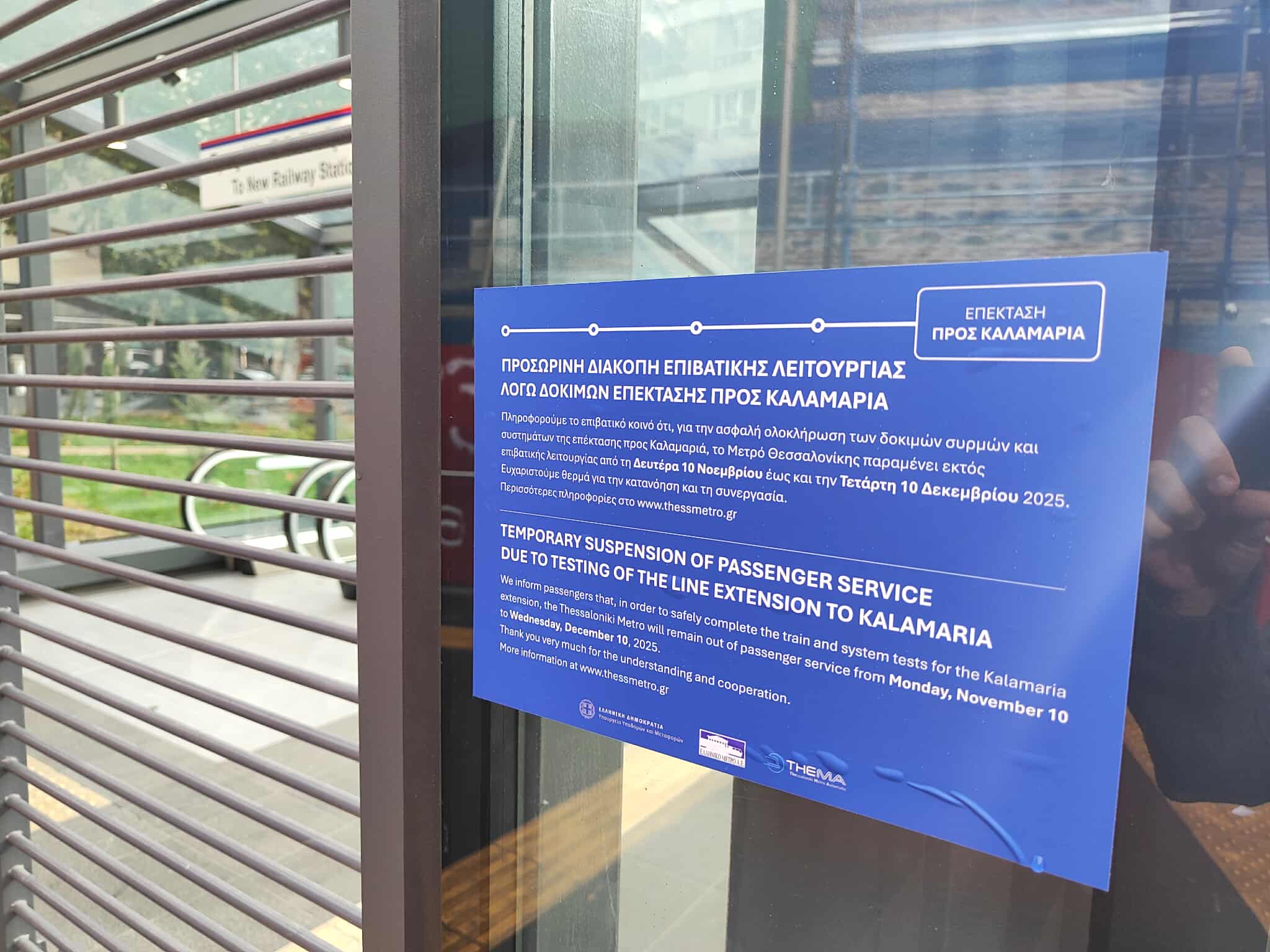 Ούτε χρόνο δεν πρόλαβε να κλείσει το Μετρό στην πόλη και για έναν μήνα από τις 10 Νοεμβρίου έως και τις 10 Δεκεμβρίου οι Θεσσαλονικείς θα πρέπει να το αποχωριστούν καθώς το νέο συγκοινωνιακό μέσο τίθεται προσωρινά εκτός επιβατικής λειτουργίας, λόγω δοκιμών για την επέκταση προς Καλαμαριά.