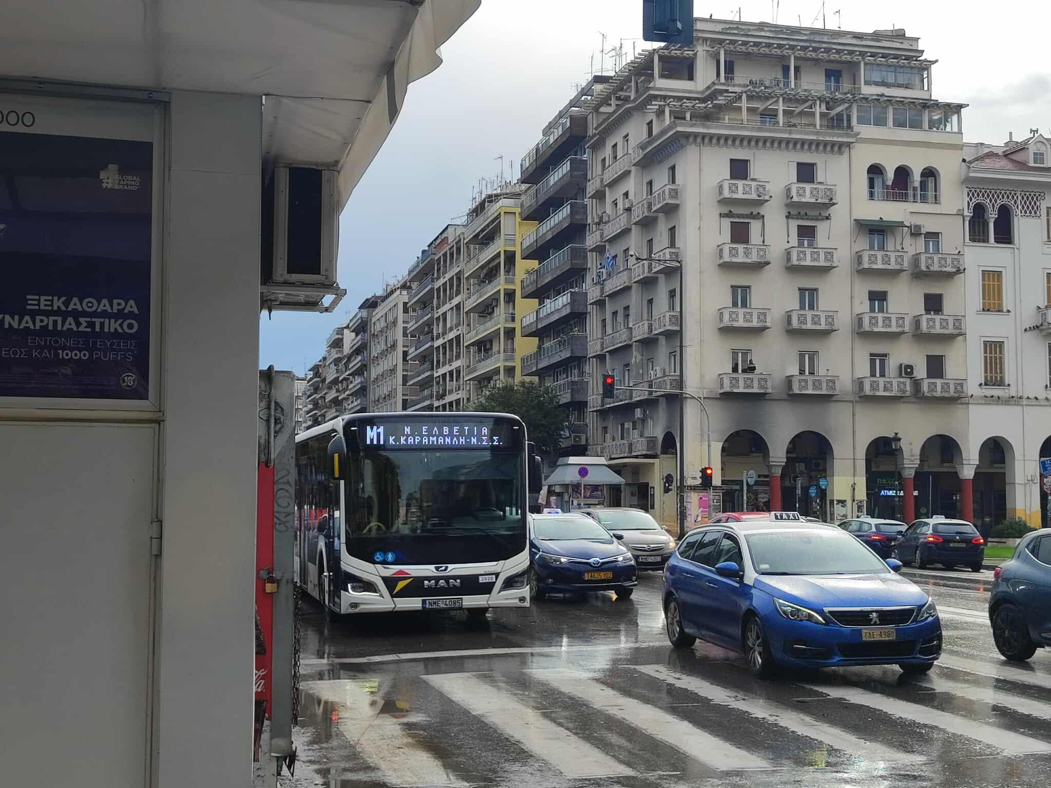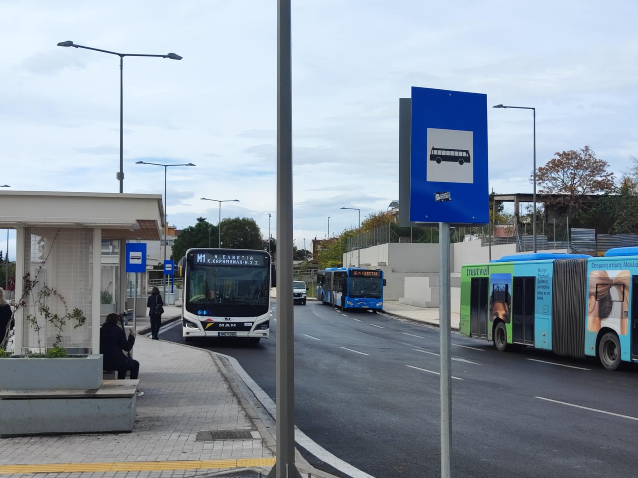 Τα λεωφορεία Μ1 έχουν πάρει τη θέση των λεωφορείων της γραμμής 19 (Κορδελιό – Ν.Σ.Σ) που έχουν μετακινηθεί λίγα μέτρα παραπέρα.