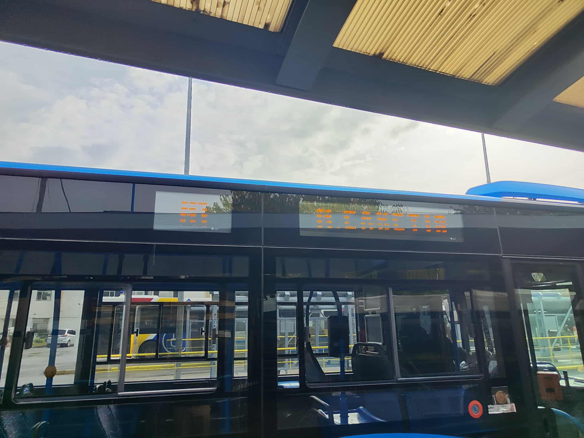 Αναχωρήσαμε με το Μ1 από το Νέο Σιδηροδρομικό Σταθμό στις 11:19, με την οθόνη τηλεματικής εντός λεωφορείου να ενημερώνει ότι η εκτιμώμενη ώρα άφιξης στο Σταθμό Μετεπιβίβασης Ν. Ελβετίας θα ήταν 11:50.