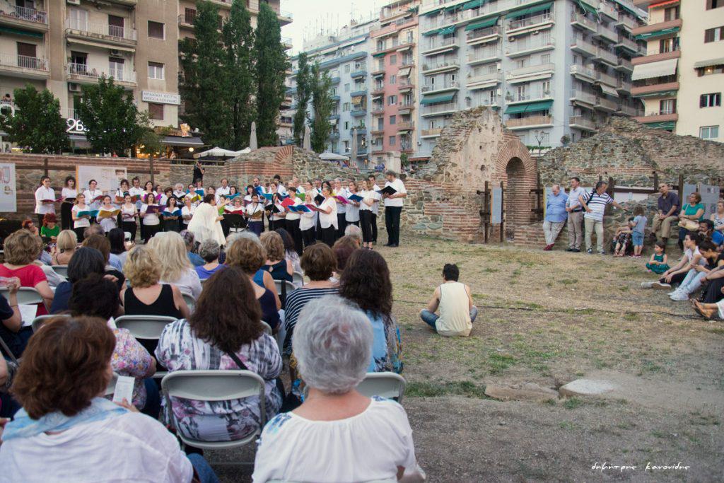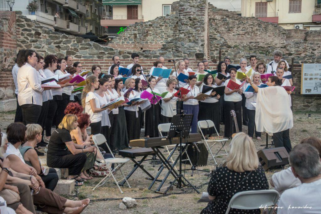 Για την ακρίβεια, σε συνδιοργάνωση της Εφορείας Αρχαιοτήτων Πόλης Θεσσαλονίκης, του Σωματείου Φίλοι της χορωδίας «Γιάννης Μάντακας» του ΑΠΘ και του Σωματείου Φίλοι του Ιστορικού Κέντρου της Θεσσαλονίκης, μια μοναδική βραδιά έλαβε χώρα στον αγαπημένο μας αρχαιολογικό χώρο και άφησε τους πάντες άφωνους.