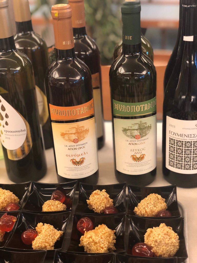 Μπουκιές χοιρινού με ροδάκινα και σάλτσα μηλόξιδου, μπουκιές τυριών παναρισμένες με σουσάμι και γλυκό κεράσι βρασμένο σε κόκκινο γλυκό κρασί, ντολμαδάκια Χαλκιδικής με αρωματισμένο γιαούρτι, ελαφριά μους μανουριού με γλυκό κρασί και τραγανή βάση αρωματισμένη με κρασί, μους ελαιόλαδο Γαλανό Μεταγγιτσίου Χαλκιδικής με κρέμα από κεράσια Ροδοχωρίου και τραγανή βάση με αγουρέλαιο Χαλκιδικής, κρέμα γιαουρτιού με φρέσκα ροδάκινα Νάουσας και ζελέ από ούζο Μακεδονίας.