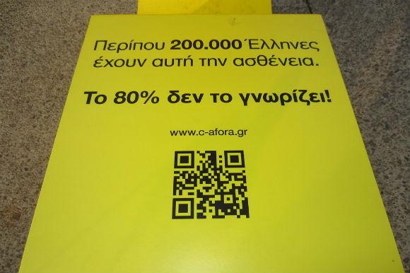 Ένα κίτρινο γράμμα «C» τοποθετήθηκε σε 5 κεντρικά σημεία της Θεσσαλονίκης. Η κατασκευή ύψους 2 περίπου μέτρων με την πρώτη ματιά δεν δίνει στοιχεία για τον σκοπό της τοποθέτησής της. Πλησιάζοντας κοντά όμως διαβάζουμε τα εξής: «Στην Ελλάδα υπάρχουν περίπου 200.000 ασθενείς με ηπατίτιδα C και το 80% από αυτούς, δεν το γνωρίζει».Τα γράμματα τοποθετήθηκαν στις 26 Απριλίου στην Πλατεία Αριστοτέλους, την Πλατεία Ναυαρίνου, την Παραλία στο ύψος του Λευκού Πύργου (παραλία), στην Καμάρα και στη Διαγώνιο Τσιμισκή και Παύλου Μελά γωνία.
