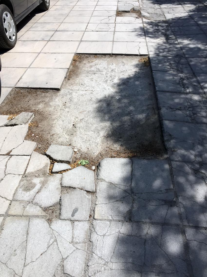 Το αποτέλεσμα είναι, μεγάλο μέρος του πεζοδρομίου να έχει καταστραφεί και να έχει καταστεί επικίνδυνο.