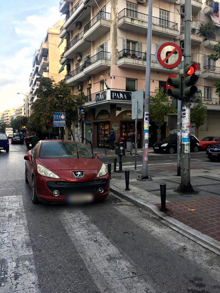 Κυριακή βράδυ. Σου λέει πού να ψάχνω παρκάρισμα. Θα μπω ανάποδα στη Β. Όλγας και θα το βάλω πάνω στη διάβαση. Μήπως θα με τιμωρήσει κανένας; Γιατί να φοβηθώ; Μήπως αστυνομεύεται ο λεωφορειόδρομος;