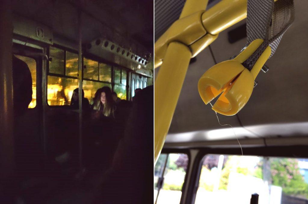 Στο συγκεκριμένο λεωφορείο στο οποίο τραβήχτηκε η φωτογραφία έλειπαν περίπου 15 χειρολαβές συνολικά. Σύμφωνα με τον αναγνώστη, τις χειρολαβές φέρονται πως ξηλώνουν παιδιά για να τις κρεμούν στις τσάντες τους.