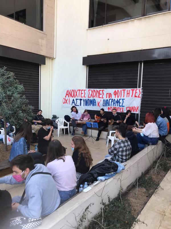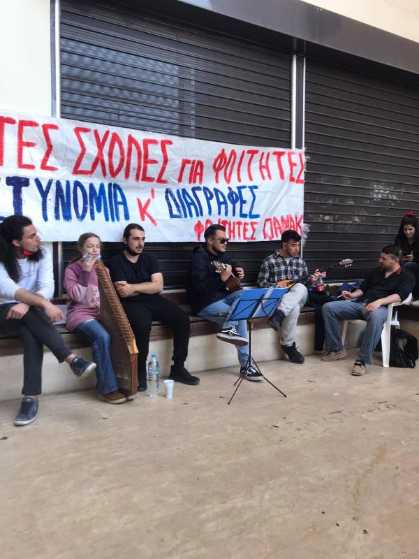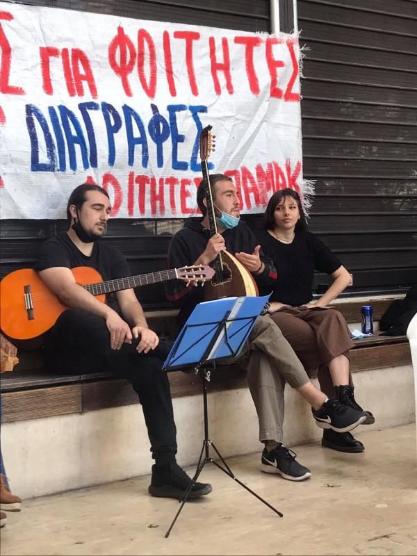 Στην Αυλή του Πανεπιστημίου Μακεδονίας και στήν υπό κατάληψη Σχολή Θετικών Επιστημόνων του ΑΠΘ πριν λίγο. Δράσεις για την οικειοποίηση του χώρου και ρεμπέτικο γλέντι.