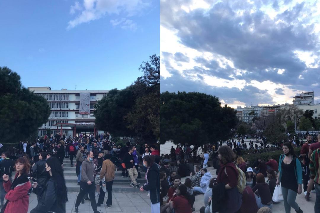 Εικόνες που θυμίζουν μια άλλη κανονικότητα απόψε στο ΑΠΘ και το ΠΑΜΑΚ. Εκατοντάδες παιδιά, σε πολλές περιπτώσεις χωρίς μάσκες σε αυθόρμητες συγκεντρώσεις και στα δυο ανώτατα εκπαιδευτικά ιδρύματα της Θεσσαλονίκης. Με την ανάγκη για ζωή να αψηφά τον κίνδυνο διασποράς που είναι τεράστιος πια σε νέους ανθρώπους.