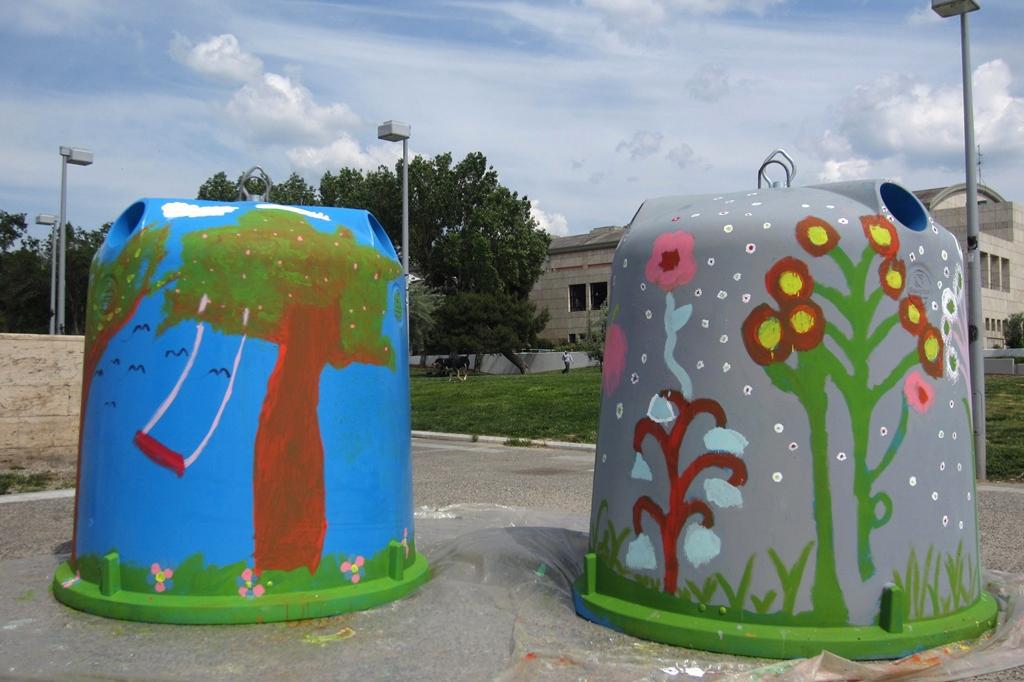 Έτοιμοι προς χρήση οι κάδοι ανακύκλωσης γυαλιού που μετά την εικαστική παρέμβαση μαθητών θα τοποθετηθούν σε σημεία της πόλης. Έχω αντιρρήσεις για το τεράστιο μέγεθος αυτών των κάδων. Η πόλη δεν έχει πεζοδρόμια που μπορούν να τους δεχτούν χωρίς να παρενοχληθούν οι πεζοί. Από τη στιγμή, όμως, που αγοράστηκαν είναι εξαιρετική ιδέα να χρησιμοποιηθούν και ως καμβάς. Ίσως μ΄αυτόν τον τρόπο και οι μερακλήδες με τις υπογραφές να τους αφήσουν ήσυχους.