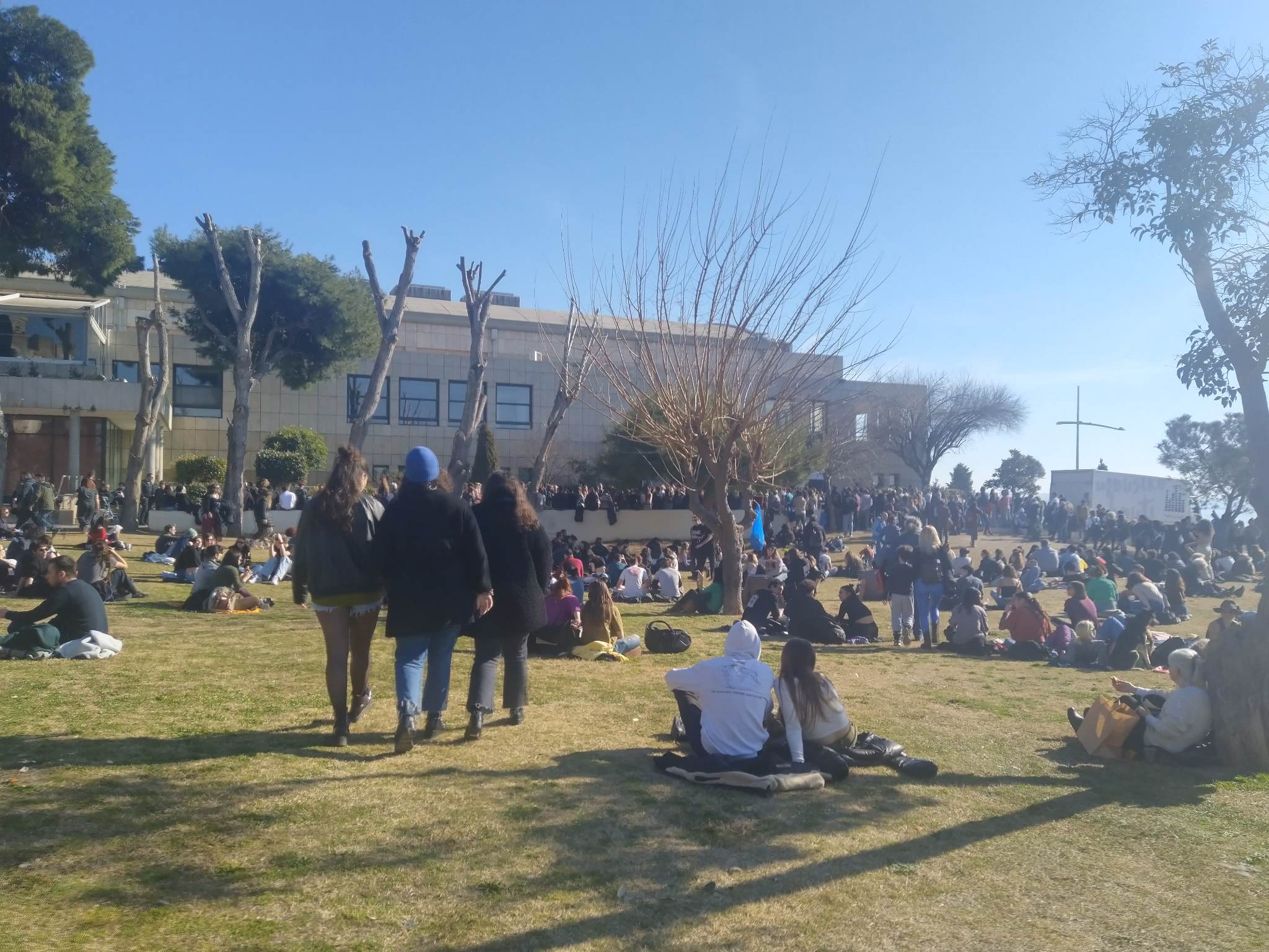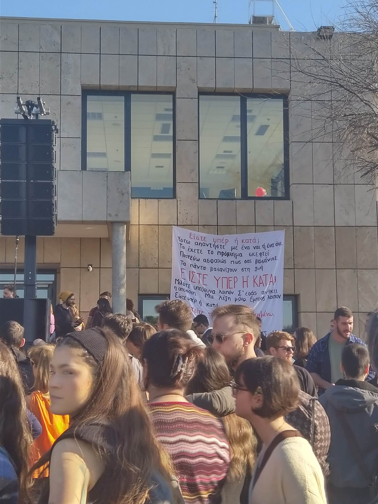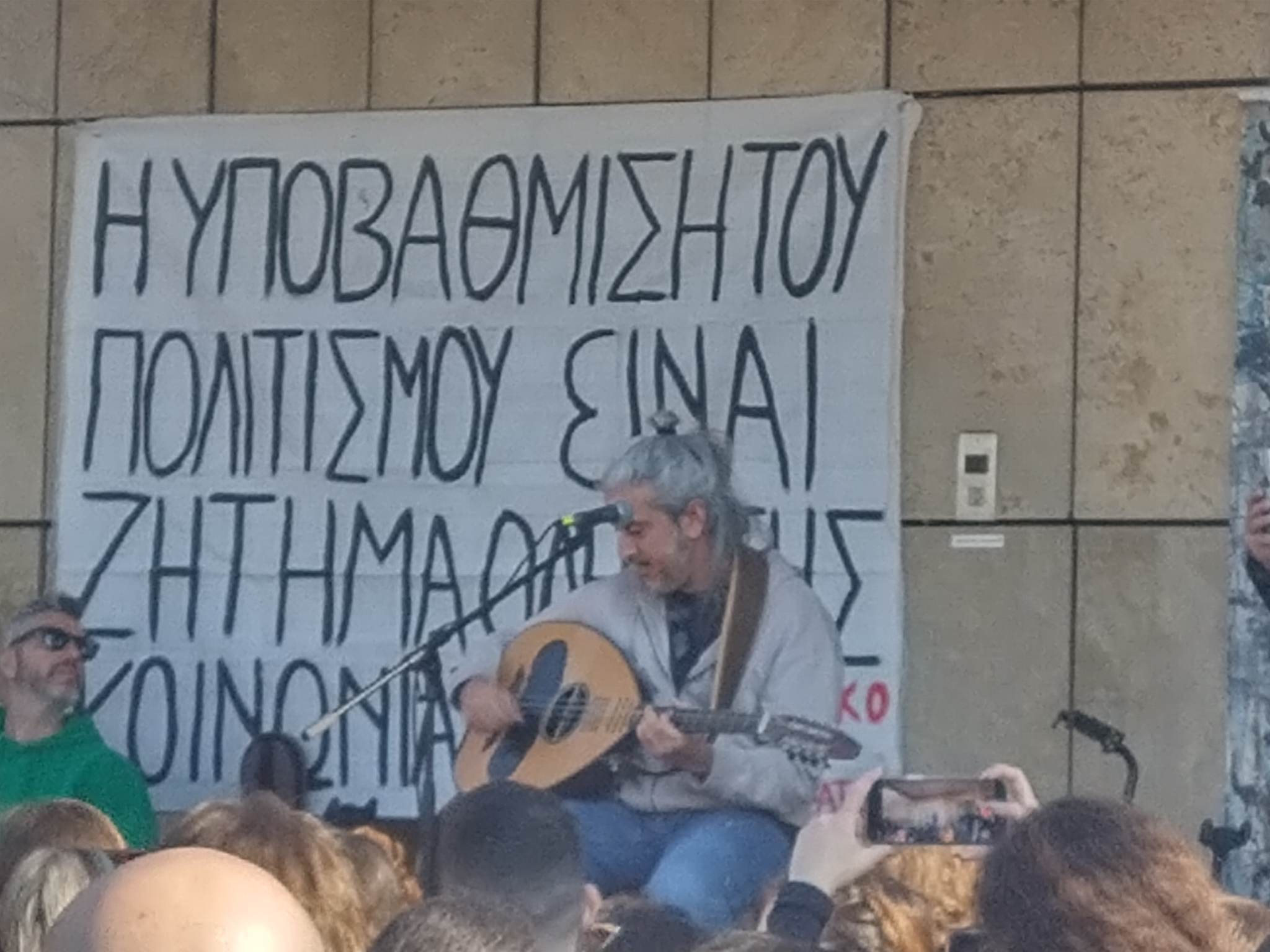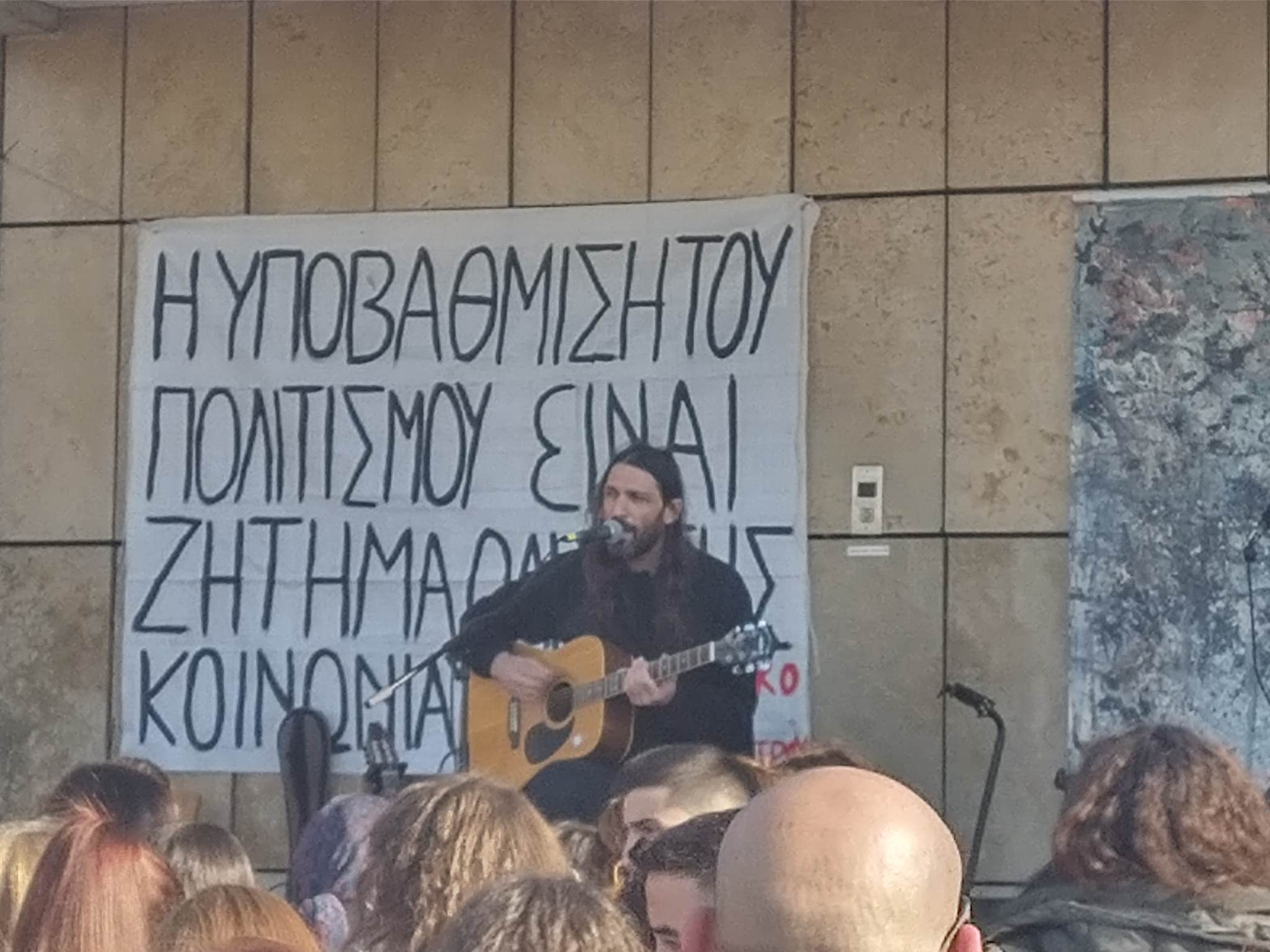 Πριν τη συναυλία του Γιάννη Χαρούλη, διαβάστηκε το κείμενο των αιτημάτων των σπουδαστών.