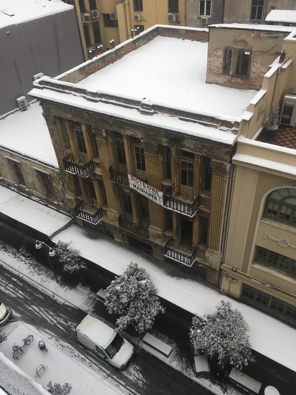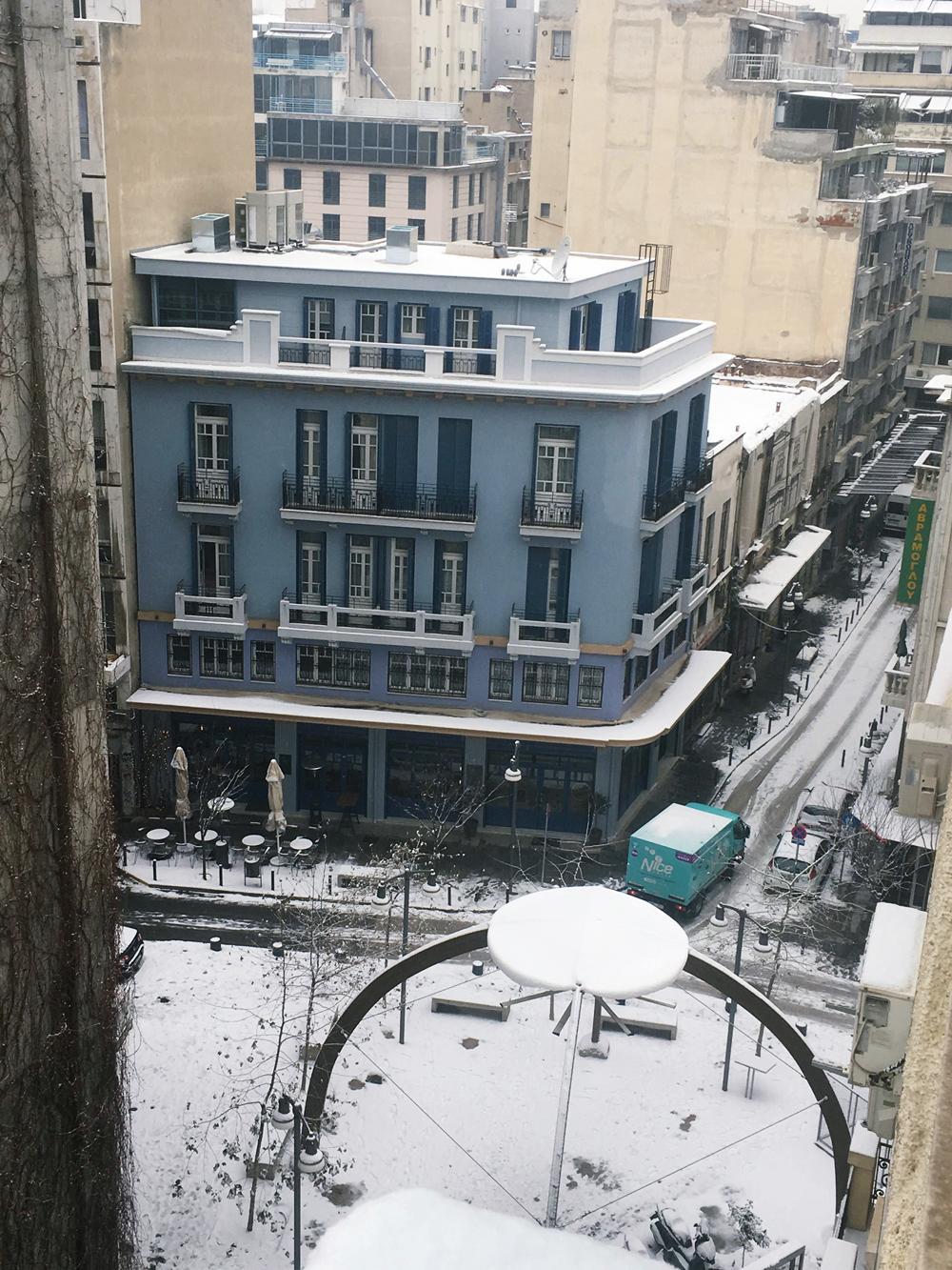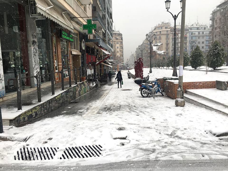 Από άκρη σε άκρη, το κέντρο της πόλης καλύφθηκε, με τα Λαδάδικα, τον Φραγκομαχαλά, τον Άγιο Δημήτριο, την Ροτόντα και φυσικά την Αριστοτέλους να έχουν γίνει τοπία ασπρισμένα, με τους Θεσσαλονικείς και τα ελάχιστα αυτοκίνητα που κυκλοφορούν στους δρόμους να περνούν διαμέσου του λευκού.