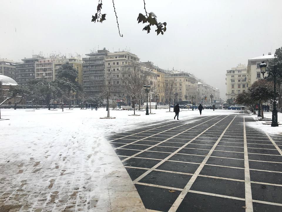 Δείτε τις εικόνες από το κέντρο της χιονισμένης Θεσσαλονίκης τώρα: