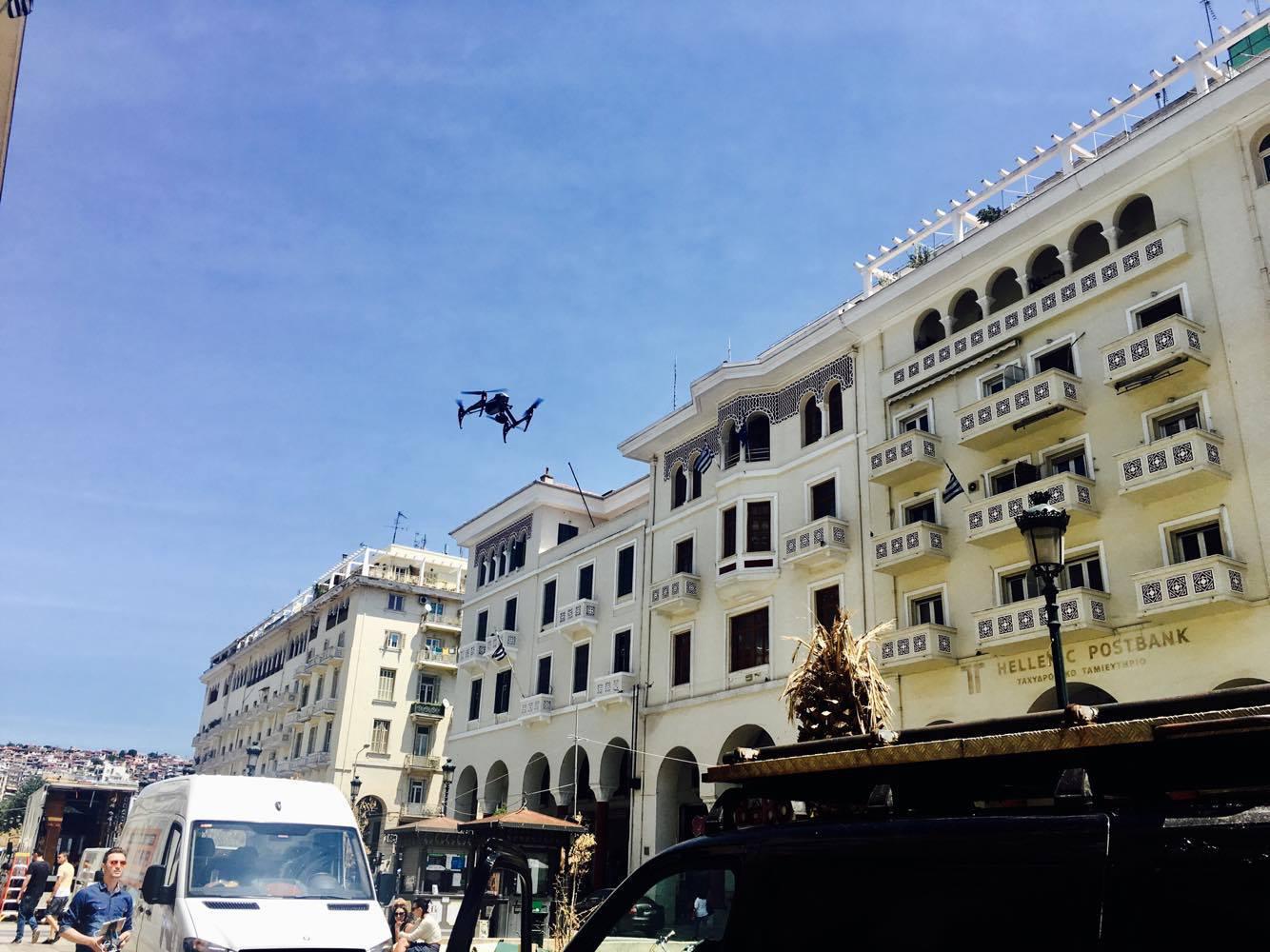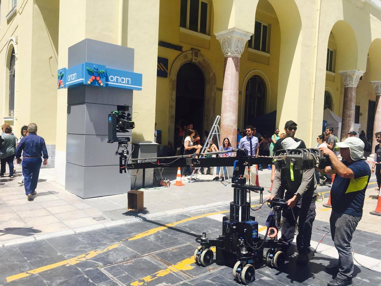 Γερανοί με κάμερες, δεκάδες τεχνικοί, Ισπανός σκηνοθέτης, drone που πετούσαν πάνω από τον πεζόδρομο, ειδικές σκηνές για καμαρίνα, catering, τεράστιος αριθμός μηχανημάτων, γυρίσματα ολοήμερα που θα τελειώσουν το βράδυ, σκηνικό που στήθηκε στον άξονα του Εμπράρ!
