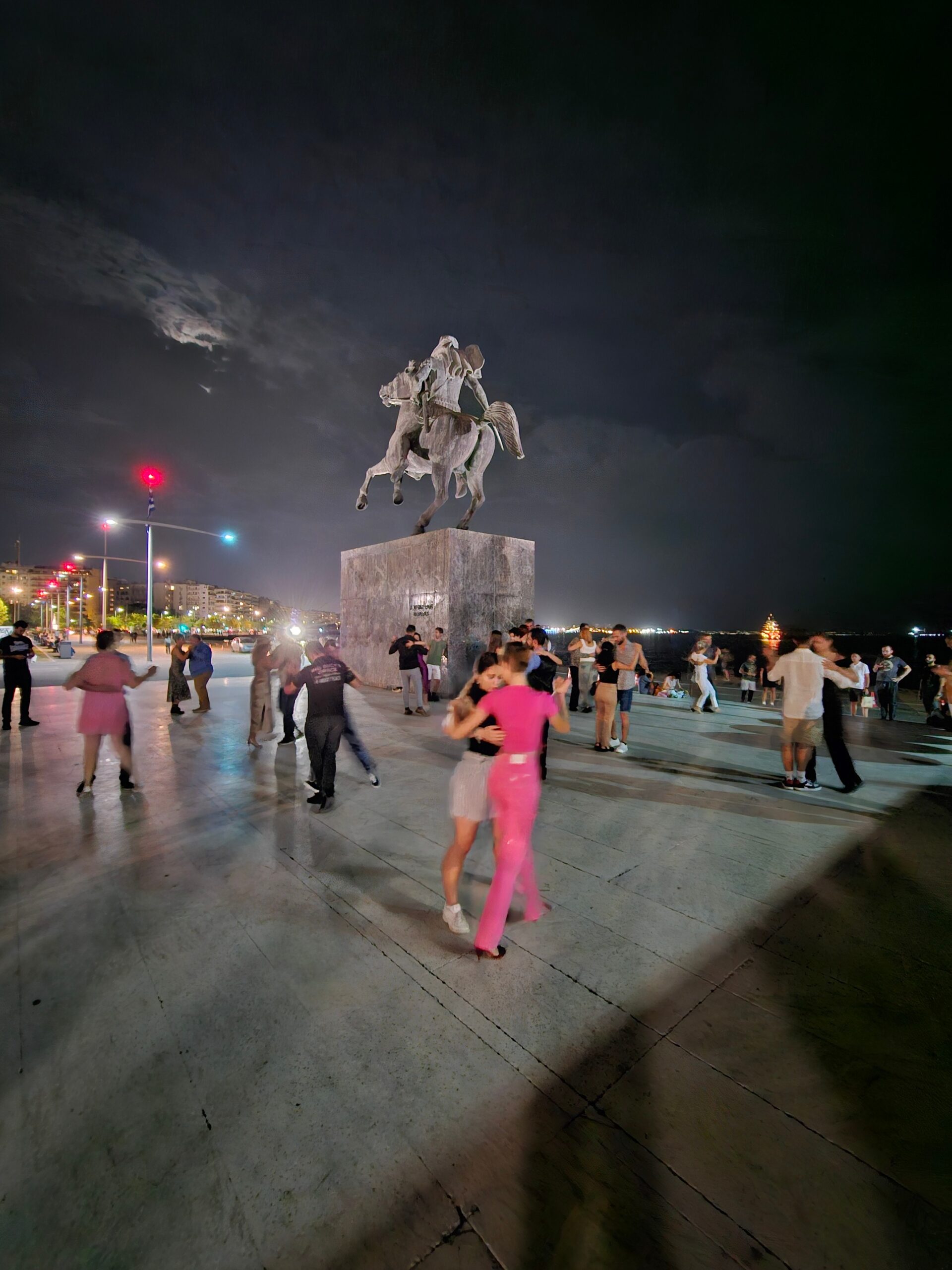 Ίσως από τα πιο ωραία events της Θεσσαλονίκης να χορεύεις τανγκό κάτω από το άγαλμα του Μέγα Αλέξανδρου δίπλα στη θάλασσα στη Νέα Παραλία. Από το «Τανγκό της Ματίνας» με την Πέμυ Ζούνη στο «Με τα μάτια κλειστά» του Παναγιώτη Καλαντζόπουλου.