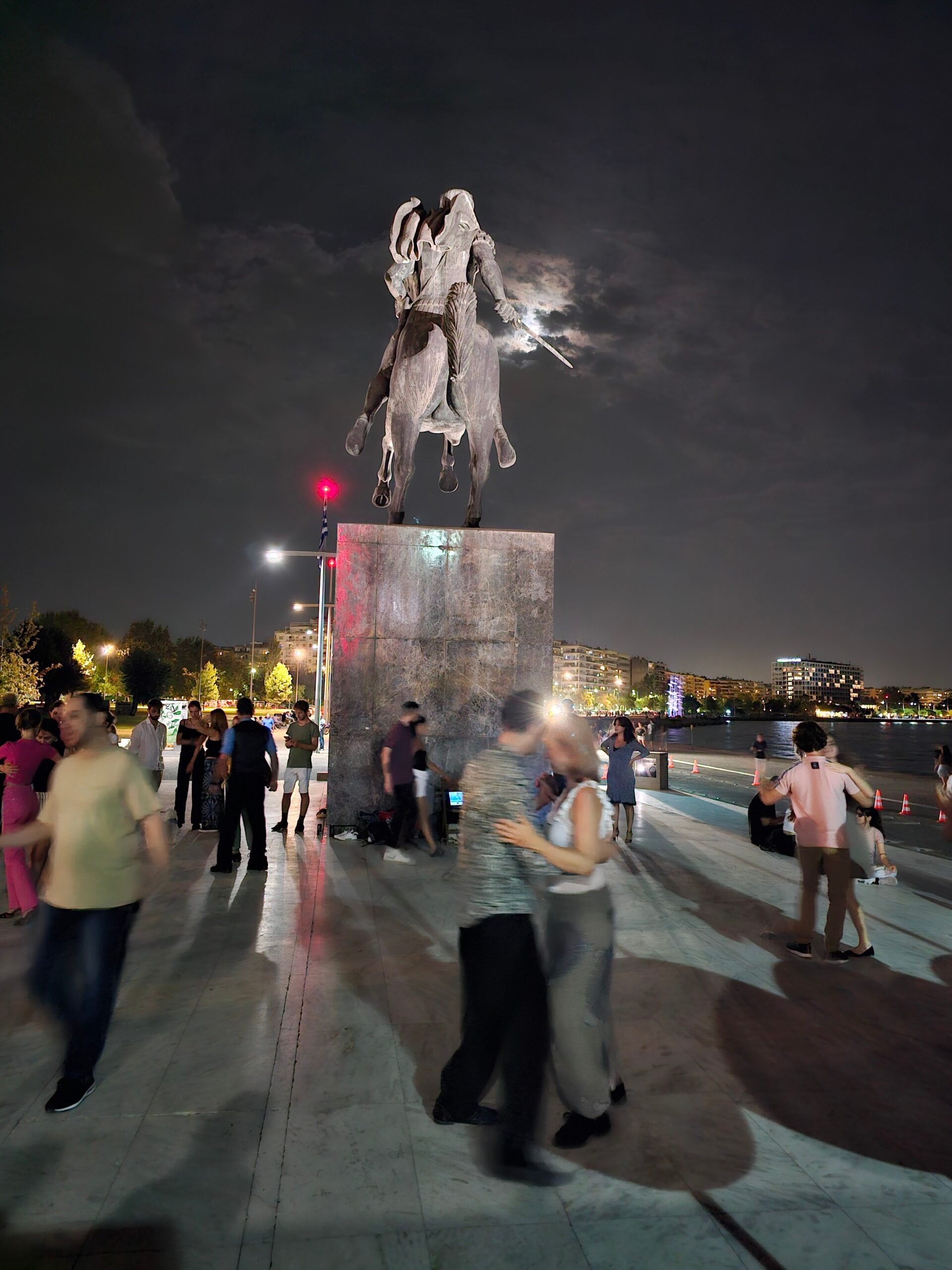 Χορεύοντας τανγκό κάτω από το φεγγάρι στο άγαλμα του Μέγα Αλέξανδρου