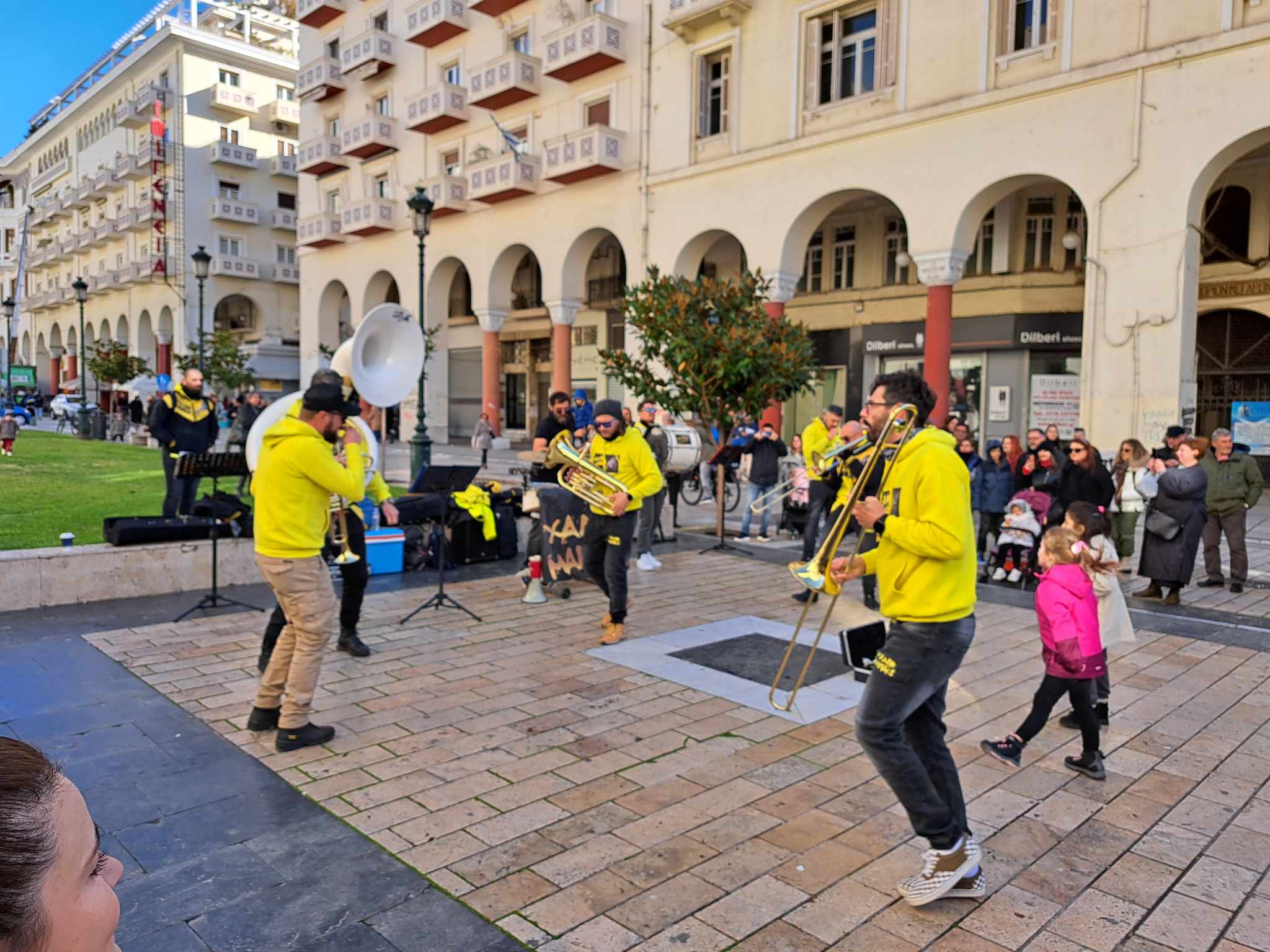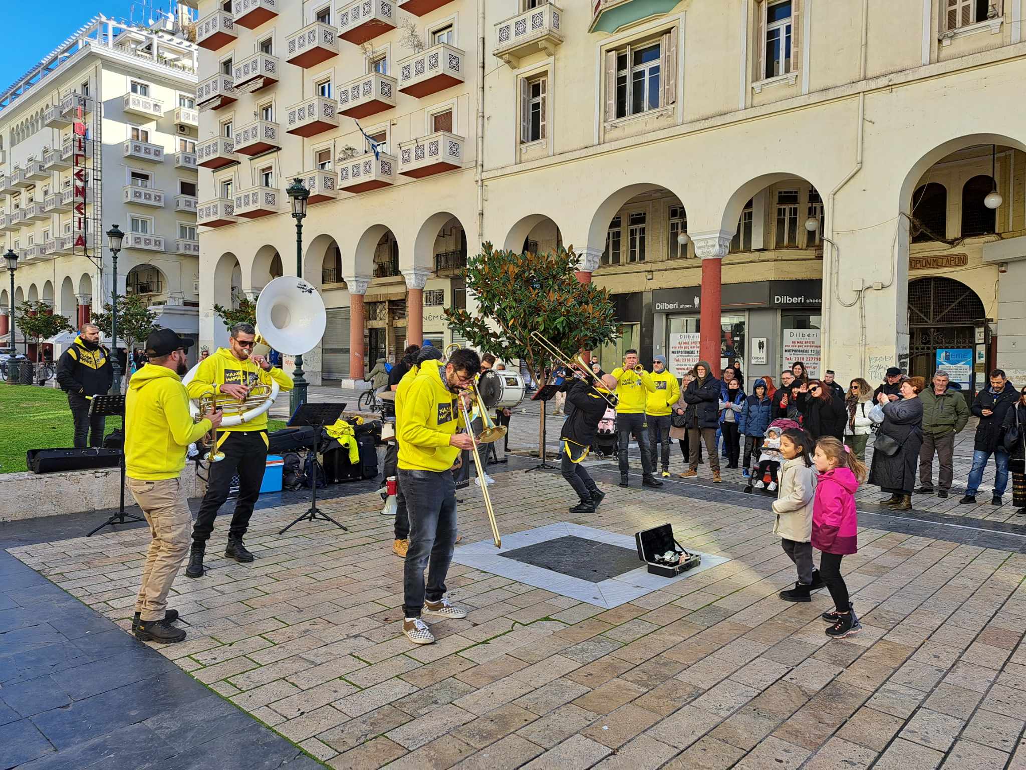 Με υπέροχες μουσικές και χορούς από καλλιτέχνες του δρόμου, διασκεδάζουν οι περαστικοί στην πλατεία Αριστοτέλους, που προσθέτουν μία ευχάριστη νότα στο ήδη γιορτινό κλίμα.