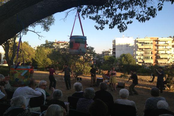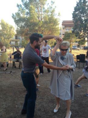 Περνώντας το κατώφλι του κήπου του γηροκομείου το σκηνικό με τον απογευματινό πορτοκαλί ήλιο που έλουζε τα πρόσωπα των ενοίκων του ιστορικού ιδρύματος, που για πρώτη φορά όπως έλεγαν οι άνθρωποι που τους προσέχουν κατέβηκαν τόσο μαζικά στον κήπο. Καθώς οι Swing till you Drop παρέα με τους χορευτές Lindy Hop Greece απελευθέρωναν θετική ενέργεια και ρυθμό ο κήπος αποκτούσε μαγικές διαστάσεις και τα χαμόγελα γέμιζαν τα πρόσωπα. Μερικοί τολμηροί δεν δίστασαν να χορέψουν μαζί με τους χορευτές σουίνγκ.