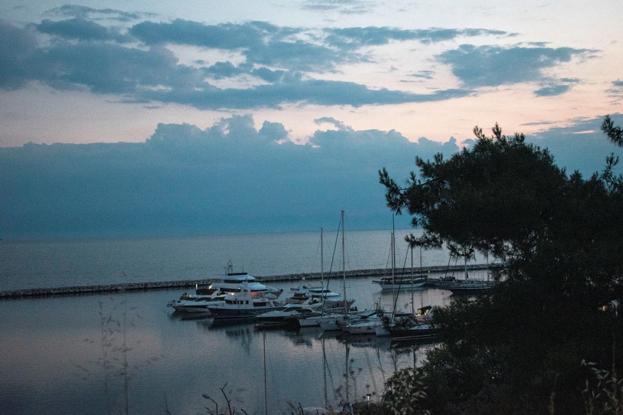Κι όσο το φυσικό φως φεύγει, έχοντας στα πόδια μας τις προβλήτες της Καλαμαριάς απολαμβάνουμε απέναντι την Περαία κι αν είμαστε τυχεροί κάποιες μέρες το μάτι μας φτάνει μέχρι τον Όλυμπο και την Όσσα.