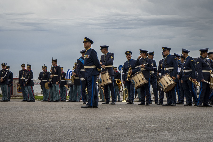 «Χρόνια πολλά σε όλους, ο στόχος μας ήταν να έρθουμε με κάτι επετειακό ώστε αυτές τις ημέρες μνήμης που είναι ιδιαίτερα συγκινητικές να προσφέρουμε με τη δική μας πινελιά σε αυτή τη συγκεκριμένη ημέρα», επισήμανε ο στρατιωτικός της μπάντας του Πολεμικού Ναυτικού , Μανώλης Κοκκώνης και ο αρχιμουσικός της μπάντας ο Αντώνης Καραγουδάκης διευκρίνησε πως για την ημέρα επέλεξαν να τραγουδήσουν τον «Ναύτη του Αιγαίου» και τα «Δυο παιδιά από Βραχώρι».