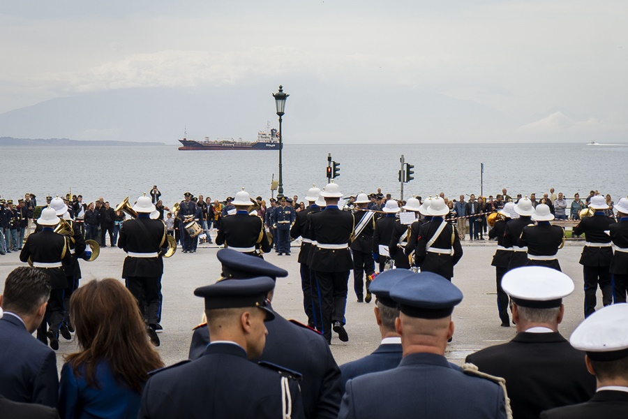 Στην πλατεία Αριστοτέλους παραβρέθηκαν για την επίδειξη της ΣΣΑΣ αλλά και των μπαντών των τριών Σωμάτων των Ενόπλων Δυνάμεων, ο αρχηγός του Γενικού Επιτελείου Εθνικής ‘Αμυνας ΓΕΕΘΑ στρατηγός Κωνσταντίνος Φλώρος, ο περιφερειάρχης Κεντρικής Μακεδονίας Απόστολος Τζιτζικώστας, ο συντονιστής κοινοβουλευτικής ομάδας της ΝΔ, Σταύρος Καλαφάτης και οι τρεις αρχηγοί Στρατού, Πολεμικής Αεροπορίας και Ναυτικού.