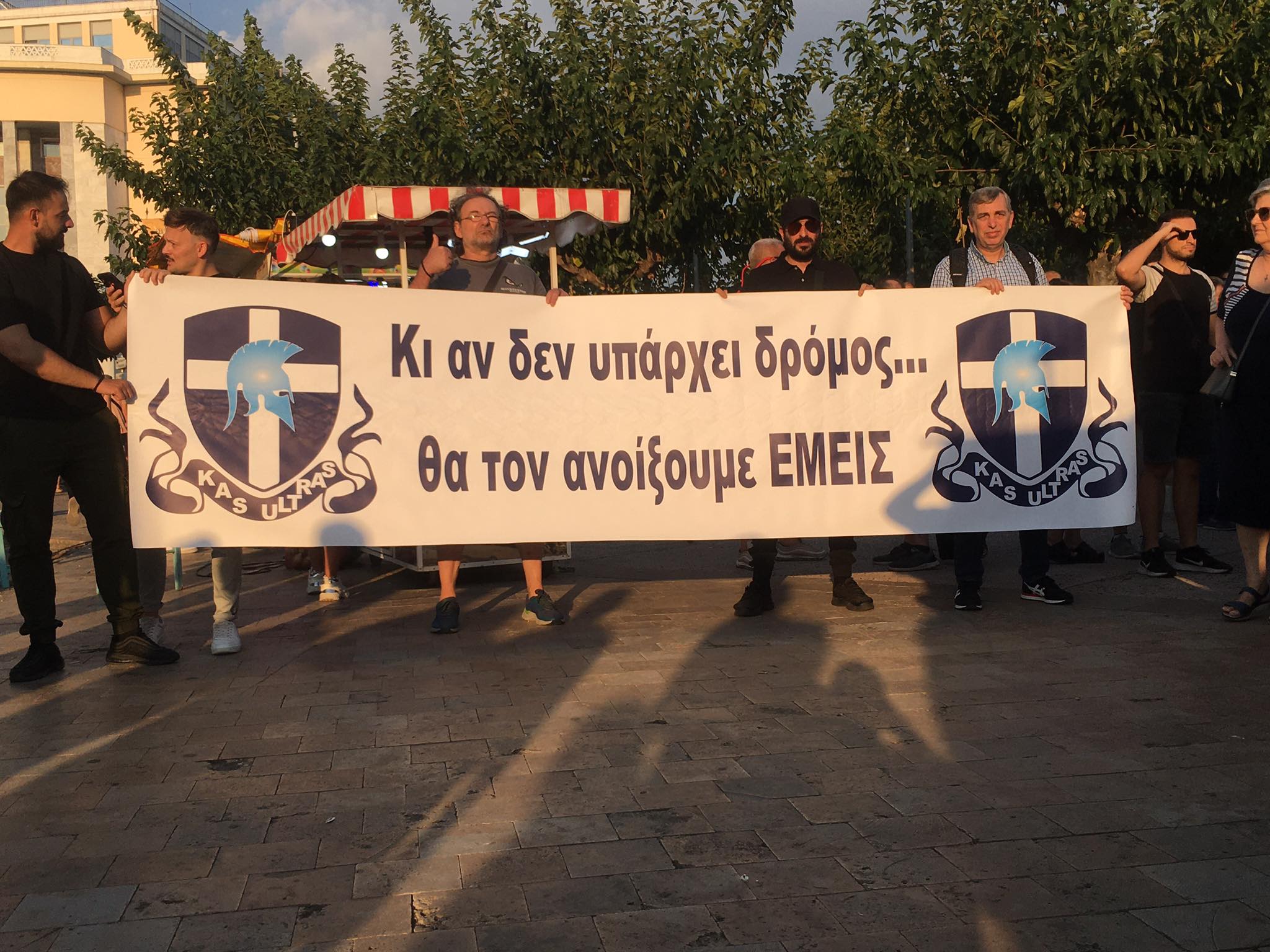 Περίπου 1000 άτομα είναι συγκεντρωμένοι ενώ σποραδικά ακούγονται και οργιλά συνθήματα κατά δημοσιογράφων με κορυφαίο το ”Αλήτες, ρουφιάνοι, δημοσιογράφοι”.