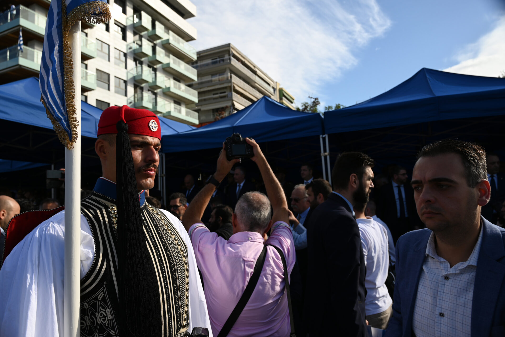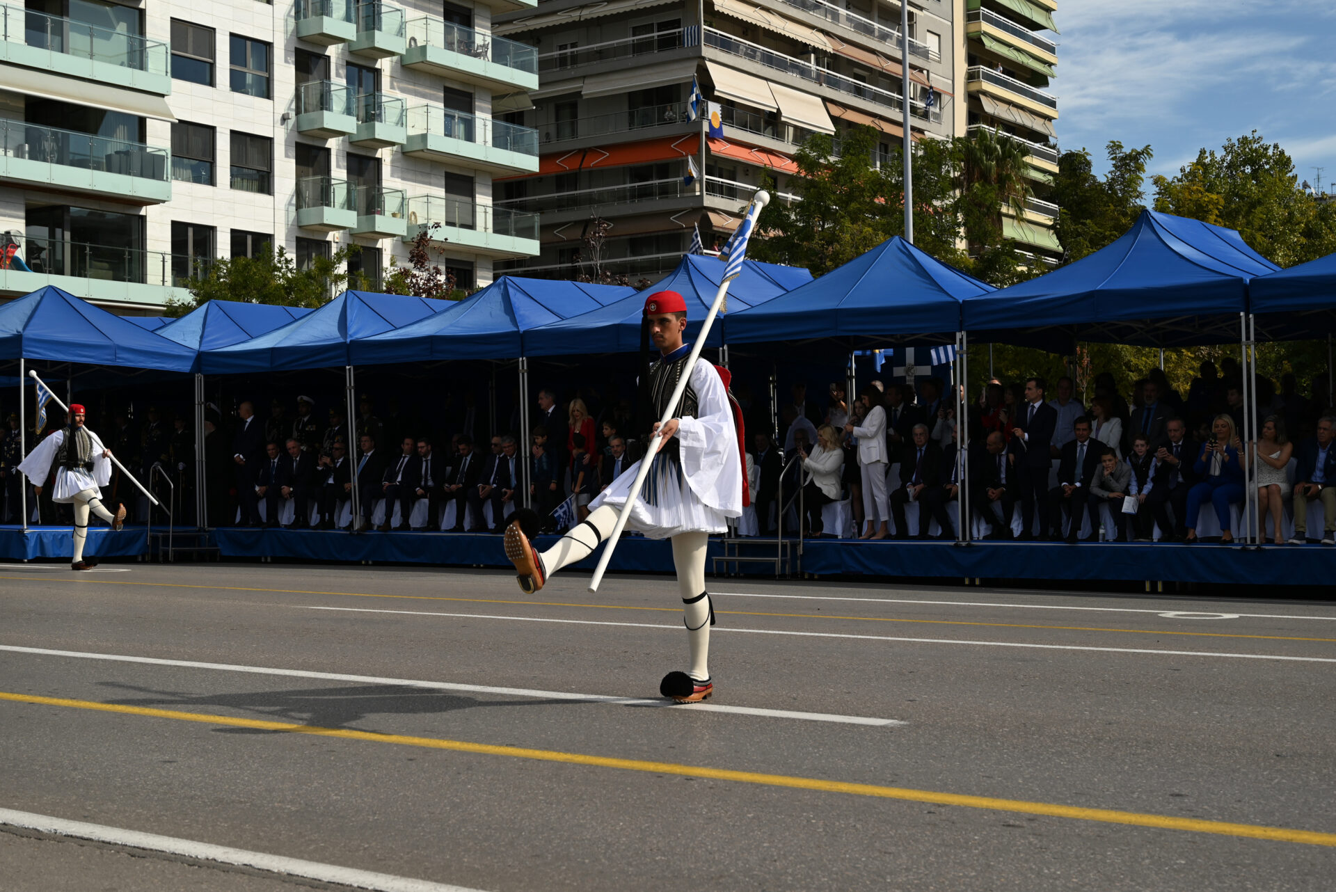 Η στρατιωτική παρέλαση ξεκίνησε στις 11:00, ενώ το «παρών» έδωσαν μεταξύ άλλων, και ο υπουργός Εθνικής Άμυνας, Νίκος Δένδιας, ο πρόεδρος του ΣΥΡΙΖΑ, Στέφανος Κασσελάκης και ο πρόεδρος του ΠΑΣΟΚ-ΚΙΝΑΛ, Νίκος Ανδρουλάκης.