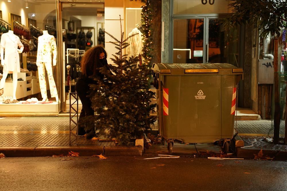 Οι εντυπωσιακές διακοσμήσεις στις βιτρίνες γίνονται αυτοκόλλητα εκπτώσεων, τα τελευταία άδεια μπουκάλια του αλκοόλ συνωστίζονται στους μπλε κάδους, τα μπαρ και τα εστιατόρια κλείνουν ξανά Δευτέρες και Τρίτες.