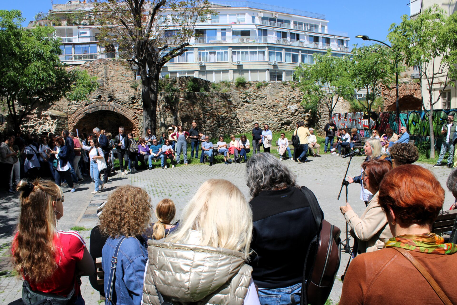Η ξενάγηση στην ευρύτερη περιοχή του Βαρδαρίου, είχε ως αφετηρία το πάρκο των Τειχών στην οδό Παπαρρηγοπούλου, κοντά στο ναό των 12 Αποστόλων. Μετά από εκεί, ακολούθησε η δεύτερη στάση στο roof garden του Capsis Hotel, όπου μάθαμε την ιστορία από τα χάνια και τα ξενοδοχεία της περιοχής, ενώ στη συνέχεια στη Βίλα Πετρίδη γνωρίσαμε το πολυπολιτισμικό πρόσωπο της πόλης. Τελευταία στάση έγινε στο Σιδηροδρομικό σταθμό, που μας αφηγήθηκε τις ιστορίες των ταξιδιωτών της πόλης.