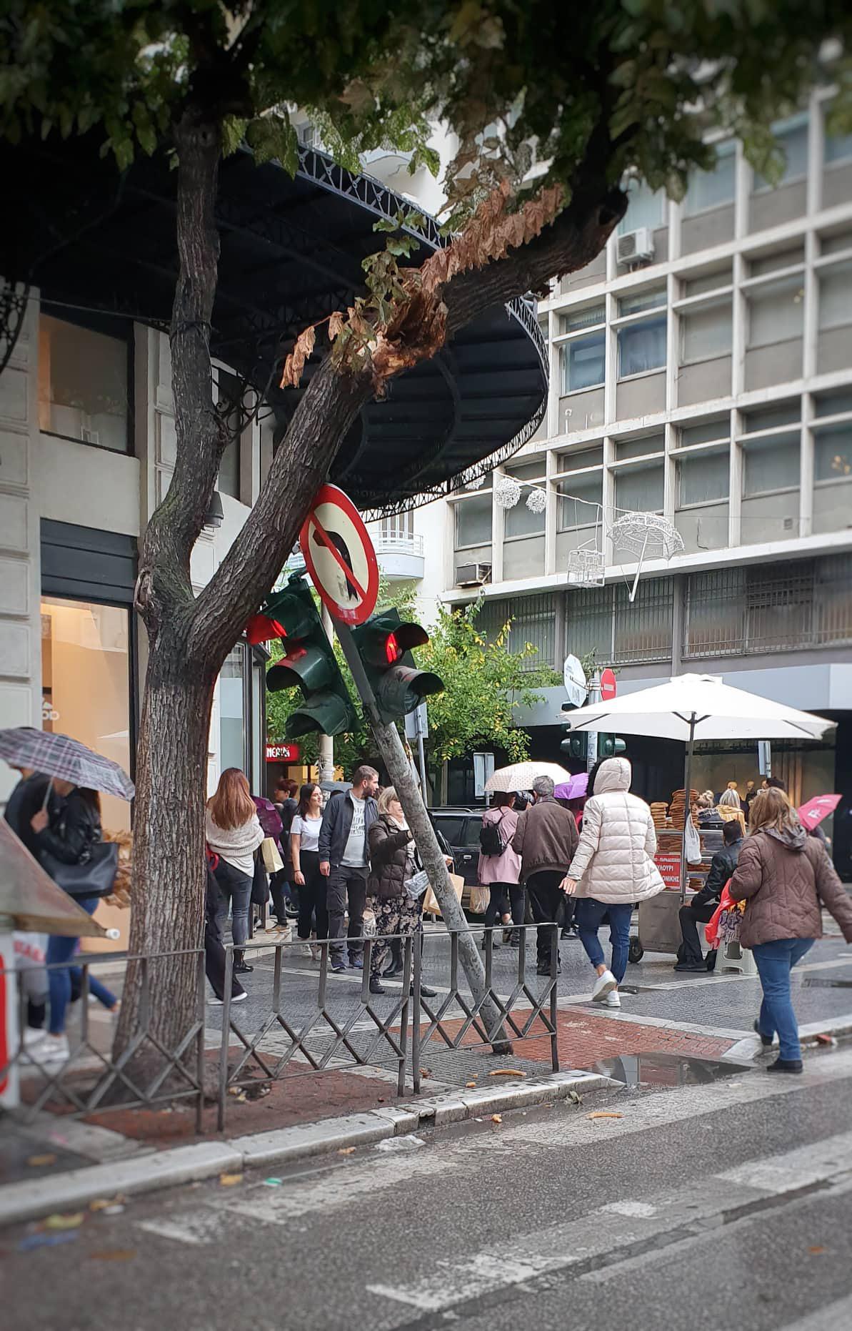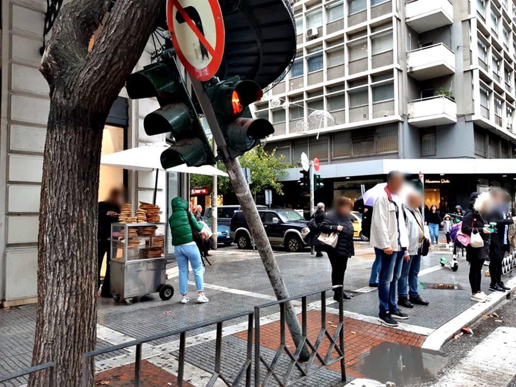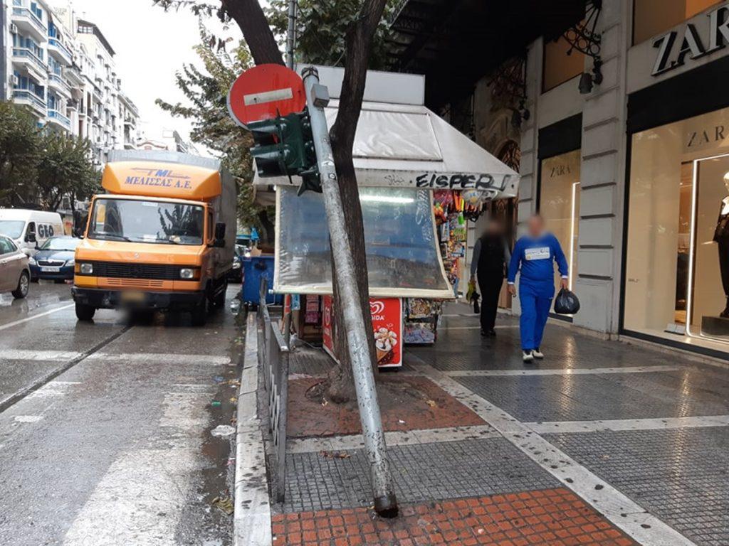 ΕΙΚΟΝΕΣ: Μισο – πεσμένο φανάρι σε λειτουργία στην Τσιμισκή εν μέσω βροχής