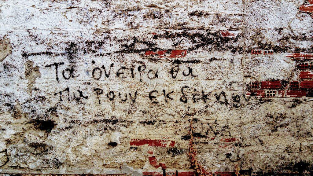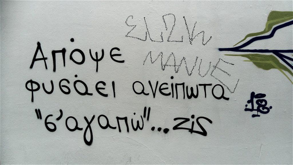 Οι ποιητές τον δρόμων γράφουν σε τοίχους. Εκφράζονται σε φρεσκοβαμμένα ντουβάρια. Αφήνουν αναμονές και απωθημένα, επιθυμίες και όνειρα με μπογιά. Για σένα που περνάς.