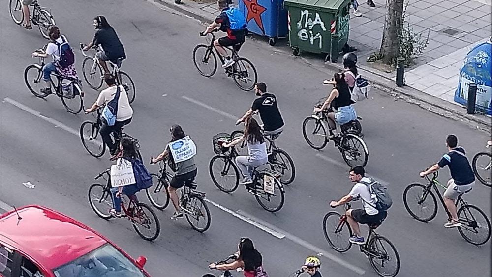 Το σημερινό ήταν ένα αρκετά ζωντανό απόγευμα για την πόλη. Με αρκετές πορείες και κόσμο να διεκδικεί και να διαμαρτύρεται. Και επειδή η Θεσσαλονίκη δεν είναι τόσο μεγάλη με τους συμμετέχοντες νομοτελειακά κάποια στιγμή να διασταυρώνουν τα δικά τους μονοπάτια. Το απόγευμα οι ποδηλάτες στην Εγνατία συνάντησαν τους αντιεξουσιαστές στην Καμάρα και αφού σταμάτησαν για λίγο μετέπειτα τράβηξαν τους δικούς τους δρόμους!