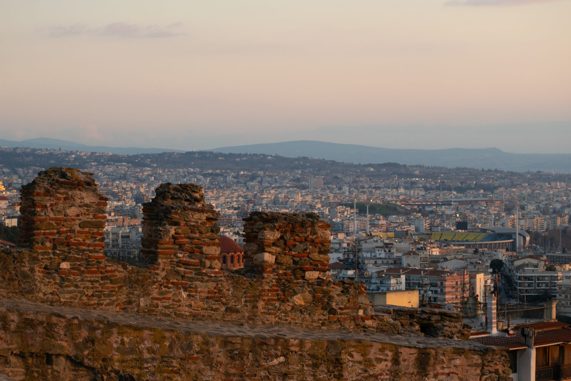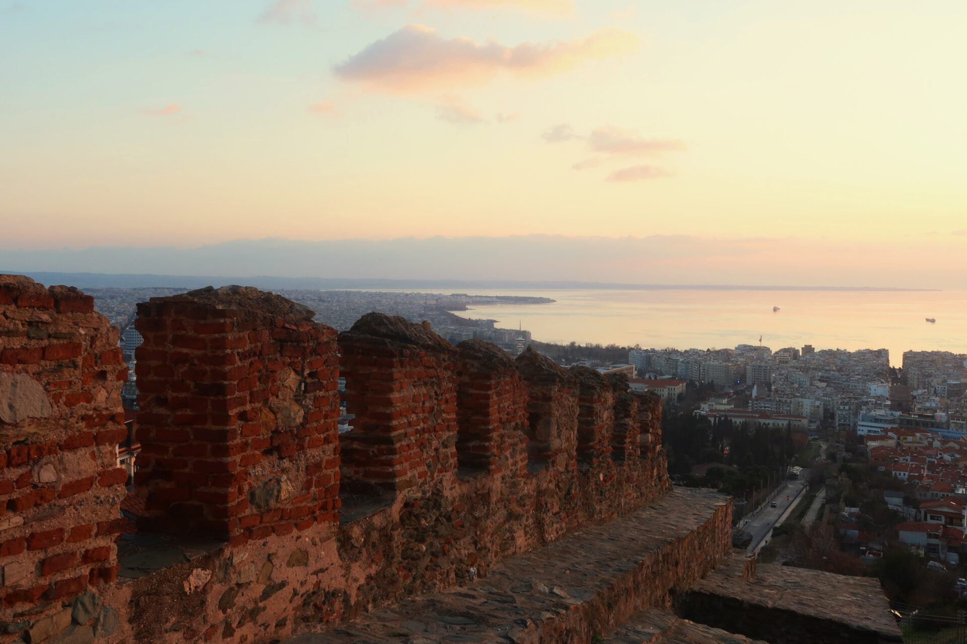 Τα Κάστρα στέκουν αγέρωχα στον χρόνο. Ιστορίες χαραγμένες στα τείχη, βλέμματα που αγκαλιάζουν την πόλη από ψηλά. Από την Ακρόπολη, η Θεσσαλονίκη απλώνεται μέχρι τα νερά του Θερμαϊκού, που τα «λούζει» ο απογευματινός ήλιος, καθώς η μέρα φεύγει.