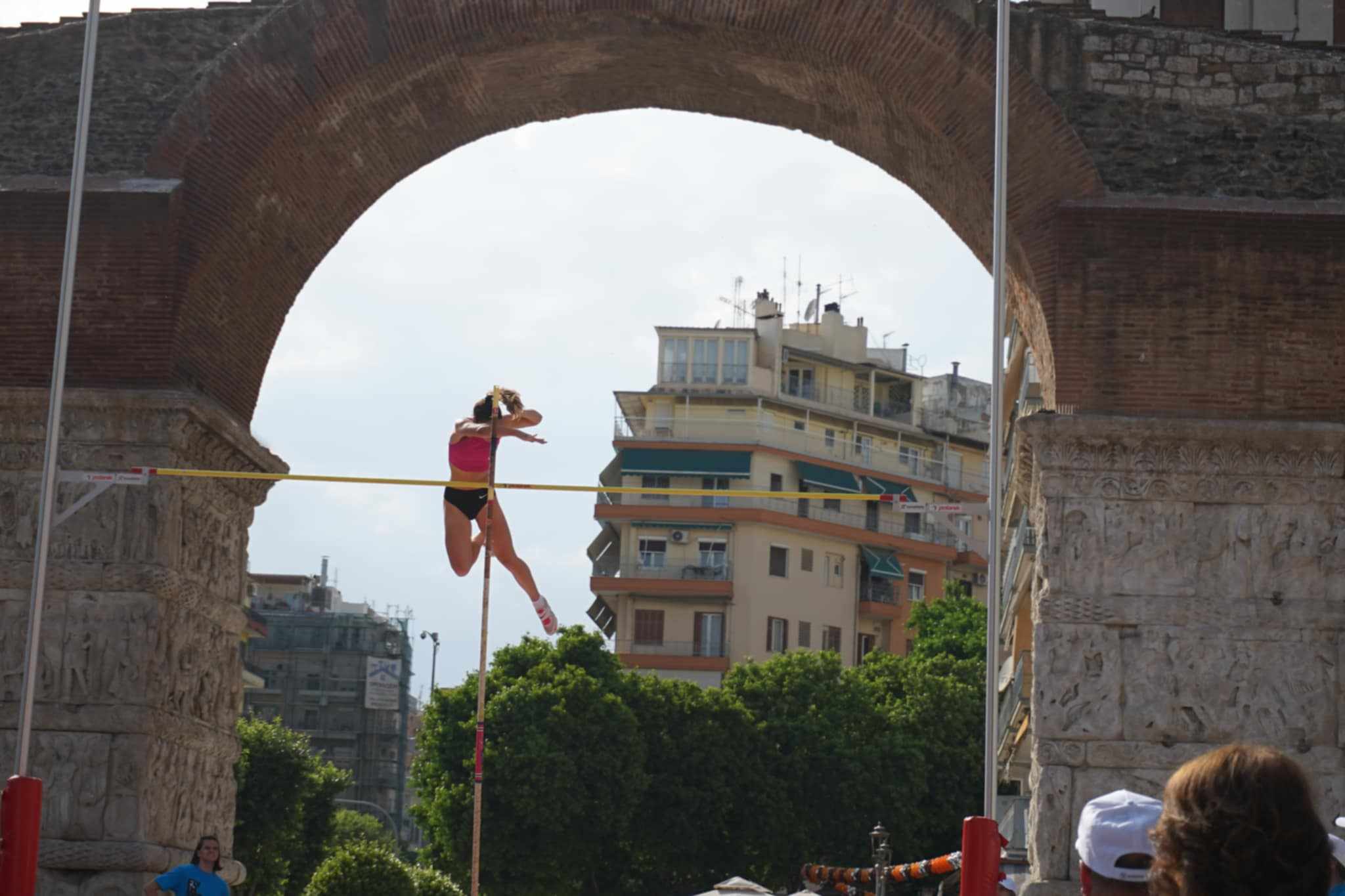 Άλτριες και άλτες «πετούν» μαζί με τα κοντάρια τους, κοιτώντας την Αψίδα του Γαλερίου, σε έναν σίγουρα ξεχωριστό αγώνα