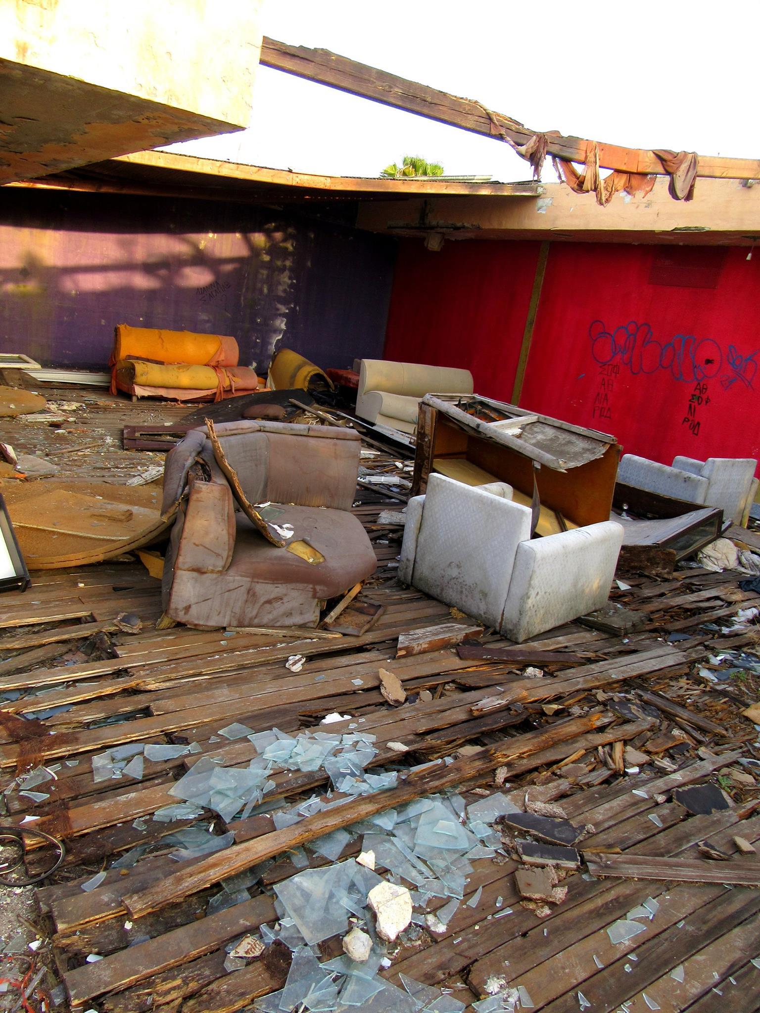 Οι εικόνες δείχνουν τις κατεστραμμένες και επικίνδυνες εγκαταστάσεις στην πλαζ, γεμάτες μπάζα, σκουπίδια, ακόμα και παλιά έγγραφα σε χώρους που χρησίμευαν ως γραφεία κάποτε.