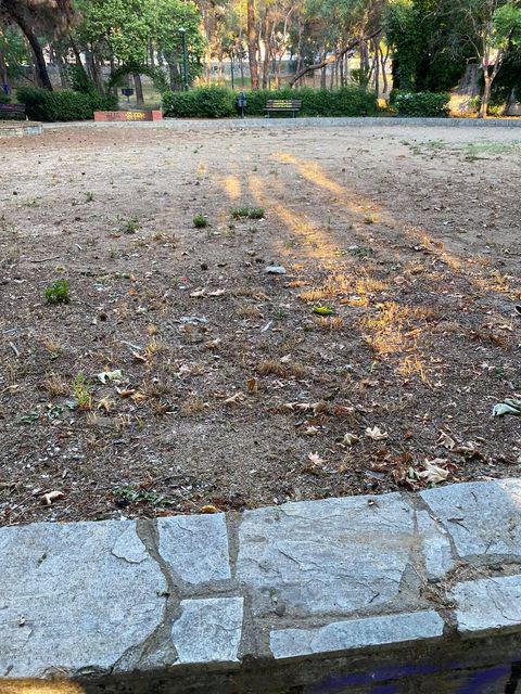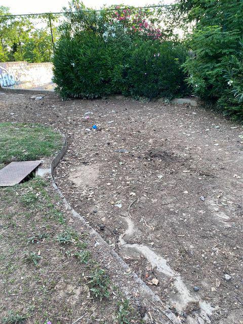 Επίσης ο χώρος γεμίζει συχνά σκουπίδια, ενώ το γρασίσι έχει καταστραφεί τελείως.
