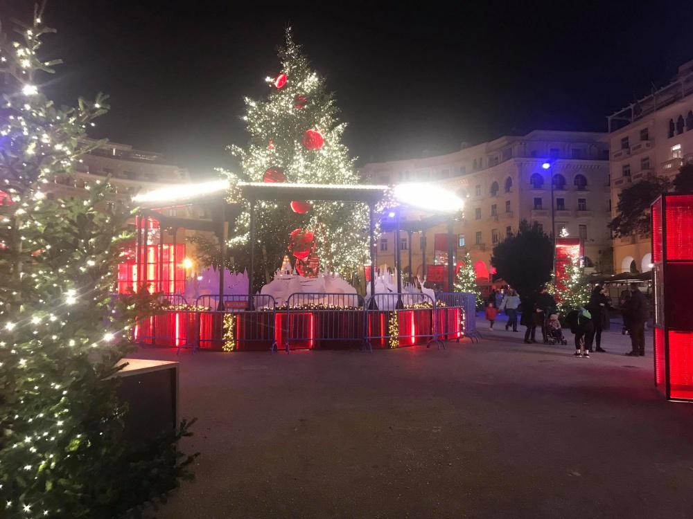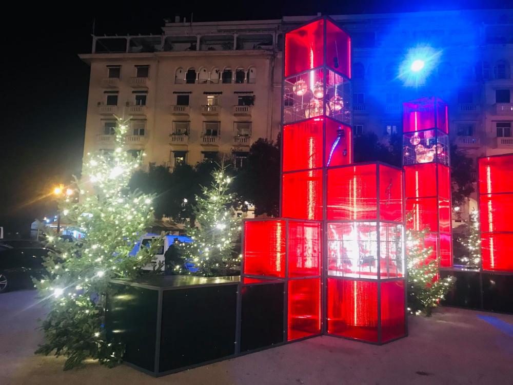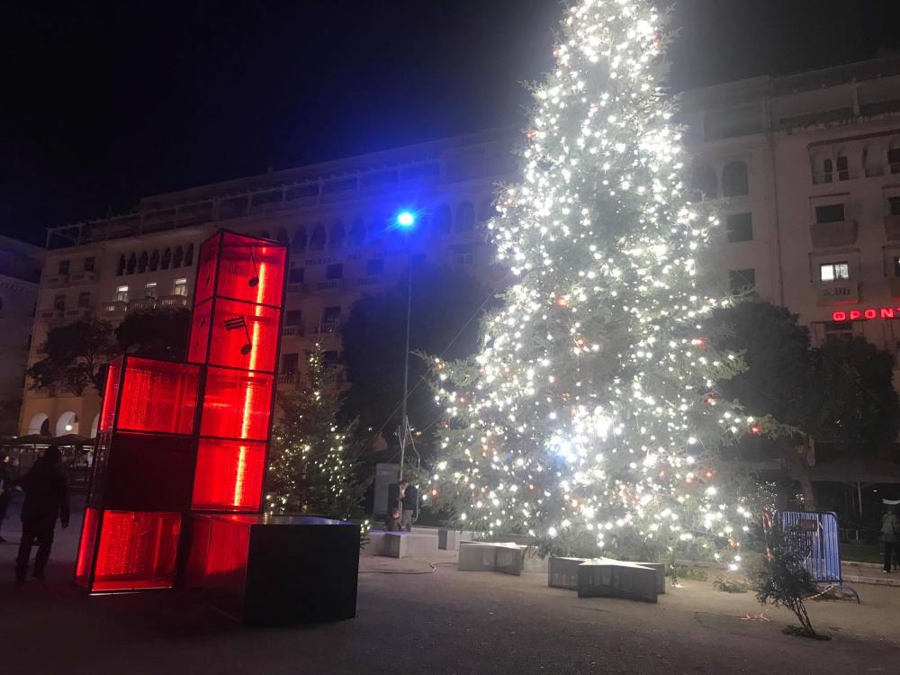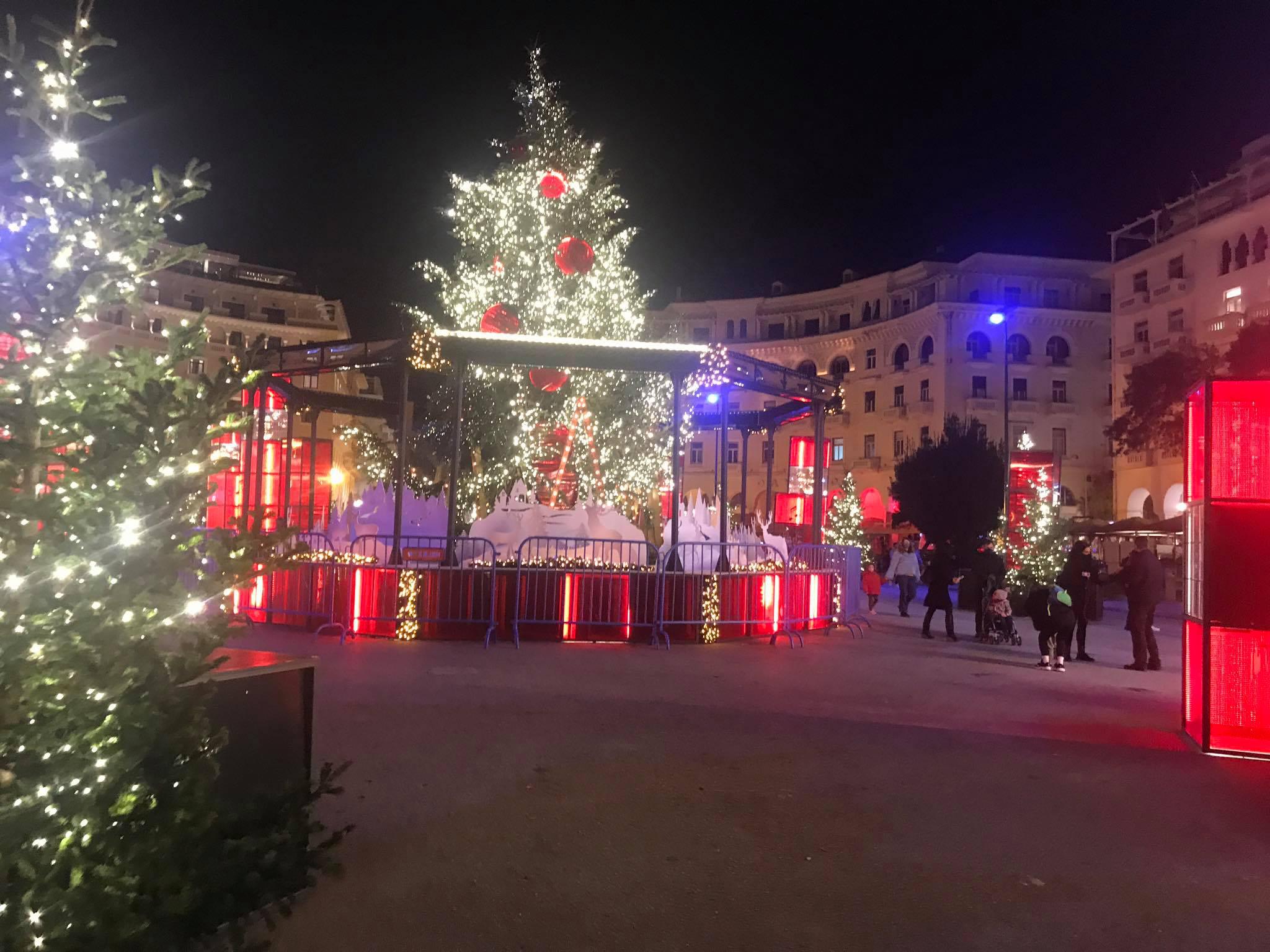 Φέτος, η διοίκηση του δήμου επιχείρησε μέσα από το φως που δημιουργούν τα χιλιάδες λαμπάκια να αλλάξει τη διάθεση των κατοίκων. Στη γωνία της πλατείας Αριστοτέλους έχει τοποθετηθεί ένα δεύτερο δέντρο, ύψους 16 μέτρων, ενώ από τον χώρο δεν λείπει ούτε η φάτνη. Το σκηνικό συμπληρώνουν οι Κόκκινοι Πύργοι, οι περιμετρικές κατασκευές που αγοράστηκαν πέρσι και μεταποιήθηκαν για τις ανάγκες του φετινού διάκοσμου.