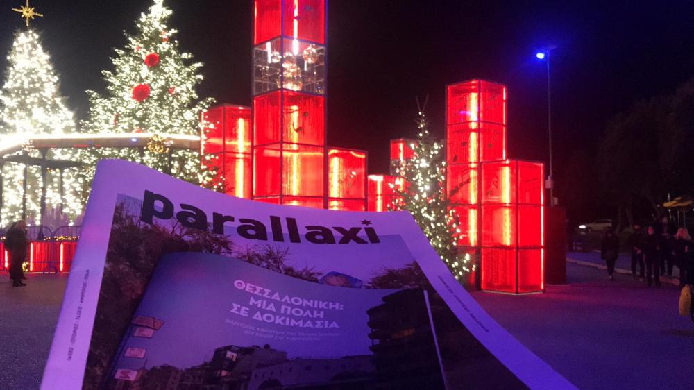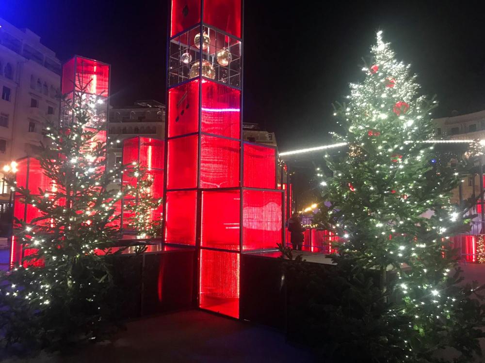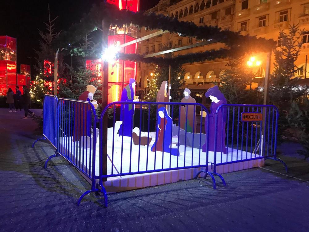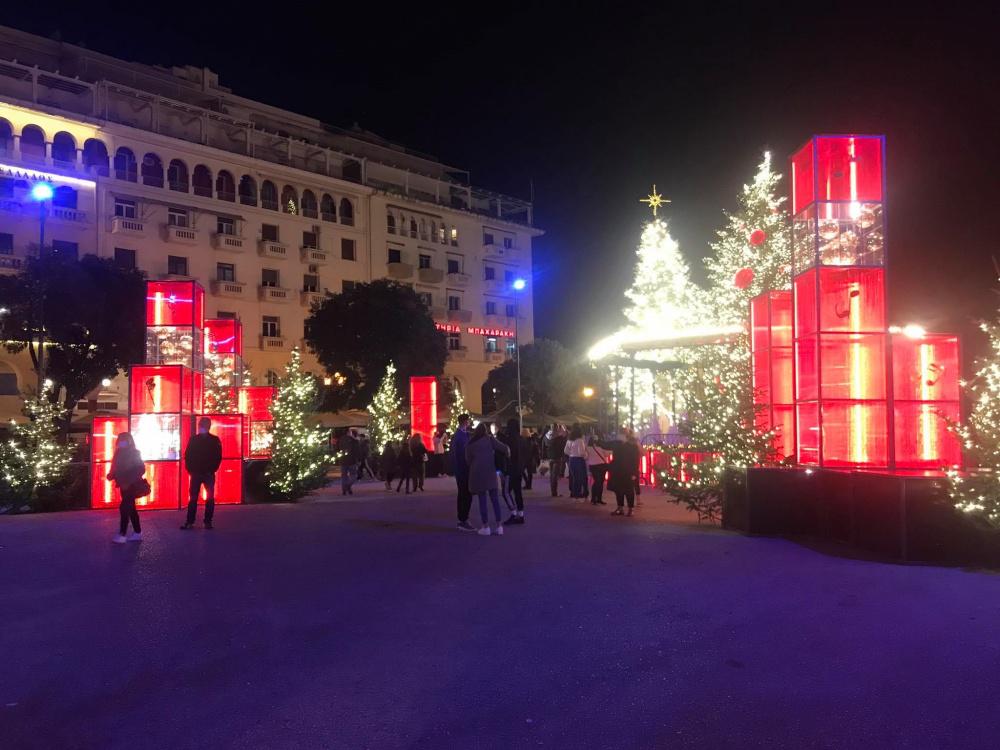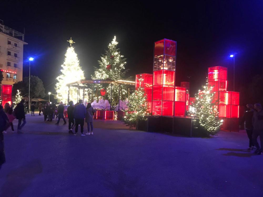 Φέτος, η διοίκηση του δήμου επιχείρησε μέσα από το φως που δημιουργούν τα χιλιάδες λαμπάκια να αλλάξει τη διάθεση των κατοίκων. Στη γωνία της πλατείας Αριστοτέλους έχει τοποθετηθεί ένα δεύτερο δέντρο, ύψους 16 μέτρων, ενώ από τον χώρο δεν λείπει ούτε η φάτνη. Το σκηνικό συμπληρώνουν οι Κόκκινοι Πύργοι, οι περιμετρικές κατασκευές που αγοράστηκαν πέρσι και μεταποιήθηκαν για τις ανάγκες του φετινού διάκοσμου.