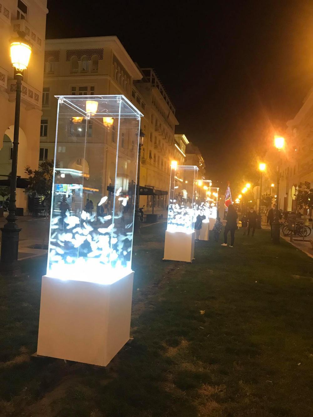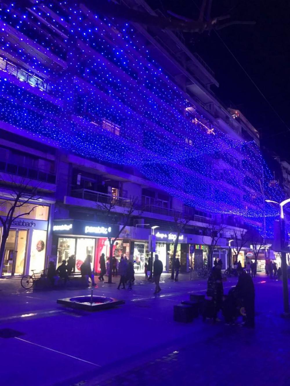 Παράλληλα, για μία ακόμη χρονιά άναψε ο «μπλε» ουρανός στον πεζόδρομο της Αγίας Σοφίας και τοποθετήθηκαν χρωματιστές τριγωνικές αψίδες στο πλακόστρωτο της Νέας Παραλίας, στο ύψος που βρίσκεται το άγαλμα του Μέγα Αλέξανδρου.