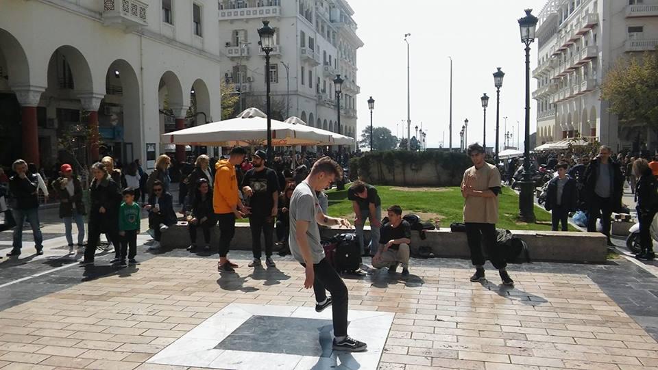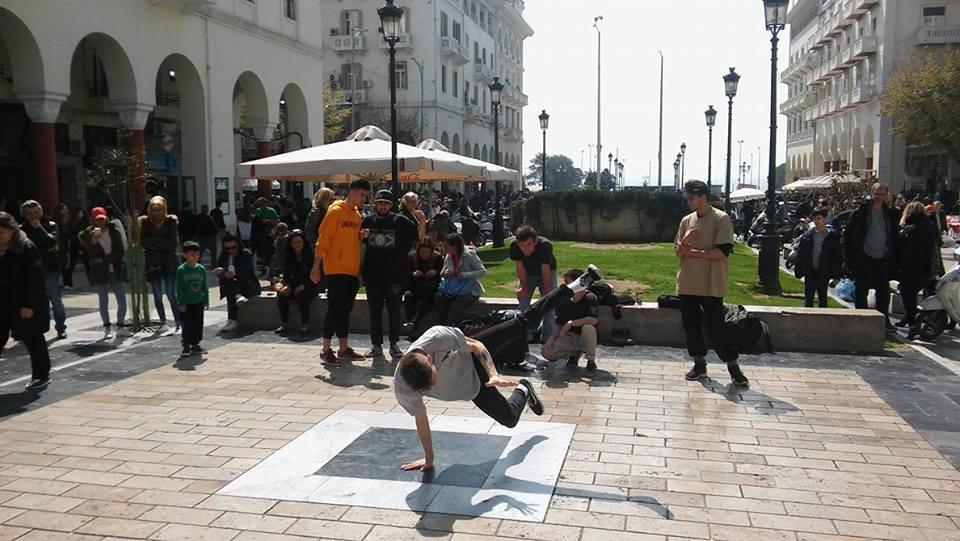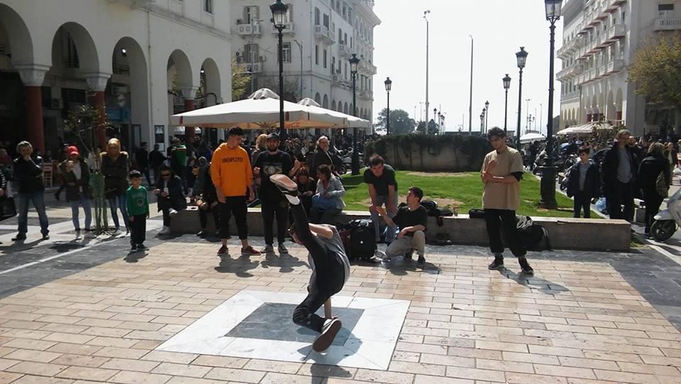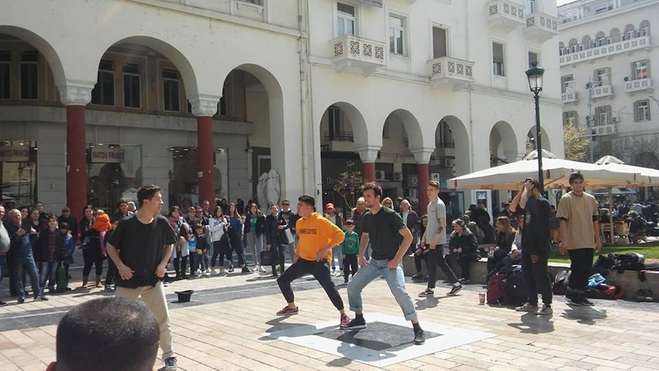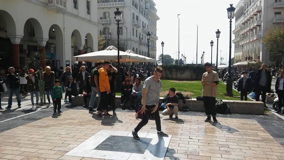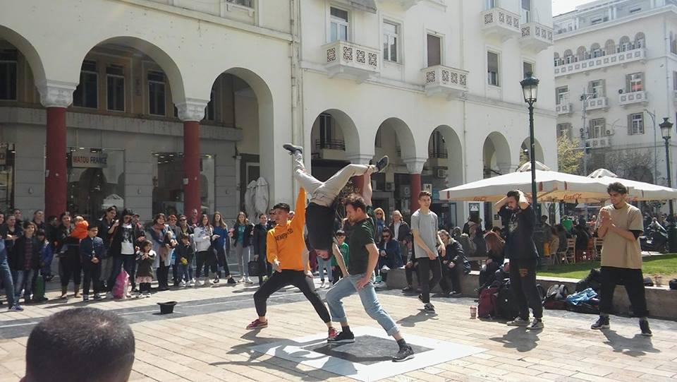 Tι και αν η Θεσσαλονίκη θρηνεί τις τελευταίες πέντε ημέρες για το εκτεταμένο και περιβόητο πρόβλημα υδροδότησης, δεν ξεχνά να γλεντήσει με την ψυχή της αυτή τη φορά με ένα χορευτικό show το ξέσπασμα της άνοιξης. Πάρτε μια γεύση από εικόνες στο κέντρο της πόλης και συγκεκριμένα από την Πλατεία Αριστοτέλους με νεαρούς χορευτές και τον κόσμο να έχουν φορέσει το πιο χαρούμενο προσωπείο τους.
