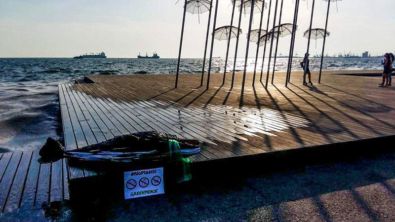 Ένα διαφορετικό …δελφίνι “ξέβρασε” η θάλασσα, σήμερα το απόγευμα, στην παραλία της Θεσσαλονίκης. Ένα δελφίνι από πλαστικά ήρθε για να μας υπενθυμίσει “την εξάρτησή μας από το πλαστικό, το μέγεθος του προβλήματος της ρύπανσης που δημιουργεί και το πόσο επικίνδυνη είναι τελικά η εξάρτηση αυτή για τις πόλεις μας, τις θάλασσές μας και την ίδια μας την υγεία”, όπως χαρακτηριστικά αναφέρει η Greenpeace, που διοργάνωσε την όλη δράση.