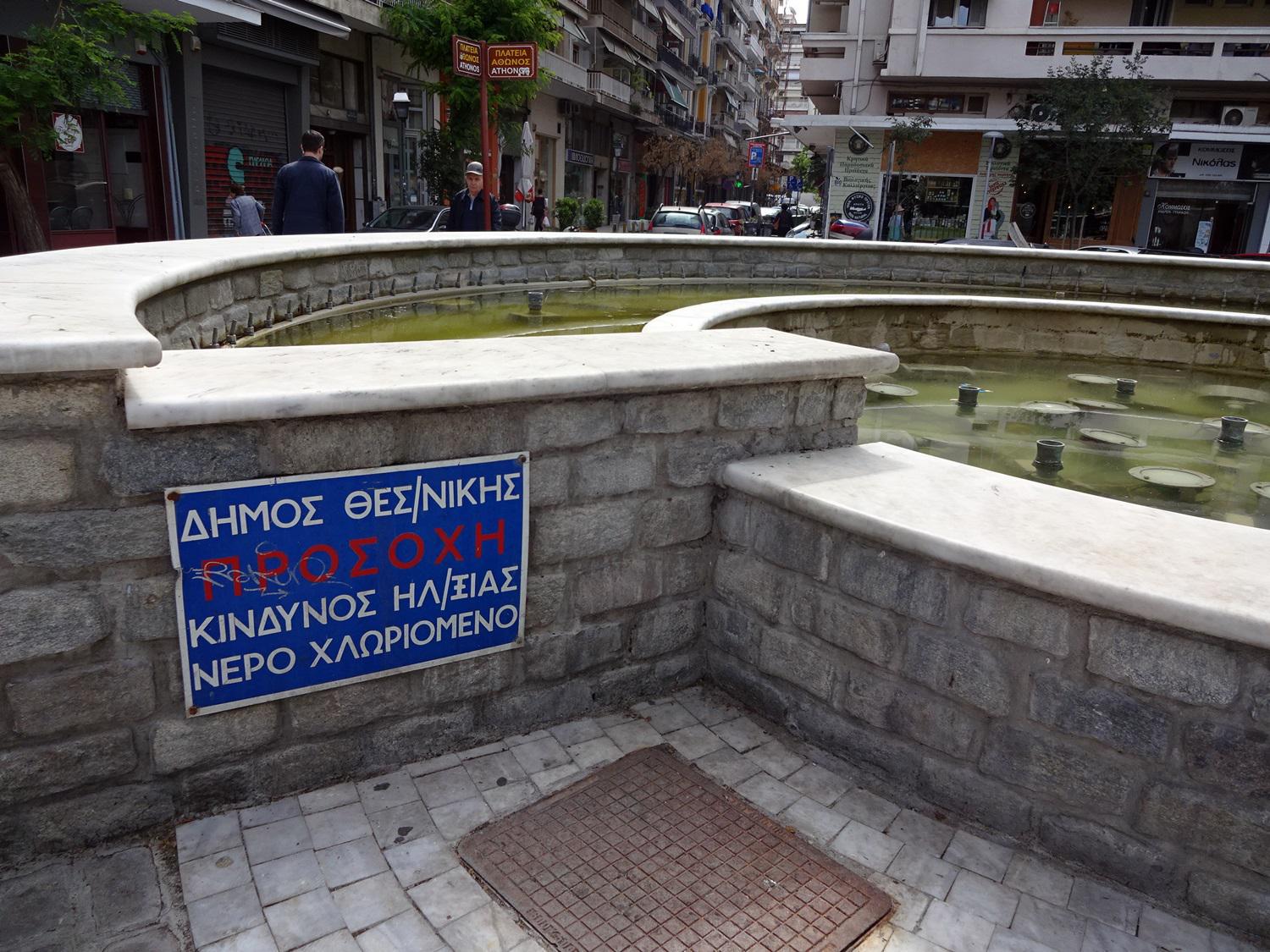 Στην ίδια κατάσταση ήταν και το μικρό συντριβάνι μπροστά στο κόκκινο σπίτι αλλά χάρις στην καταγγελία των ενεργών πολιτών της ομάδας του fb ΘεσΕπί-Κέντρῳ (Φίλοι του Ιστορικού Κέντρου της Θεσσαλονίκης) μέσω αιτήματος (https://opengov.thessaloniki.gr/imc/issue/17010), o Δήμος έσπευσε να το ευπρεπίσει με άμεσα αντανακλαστικά.