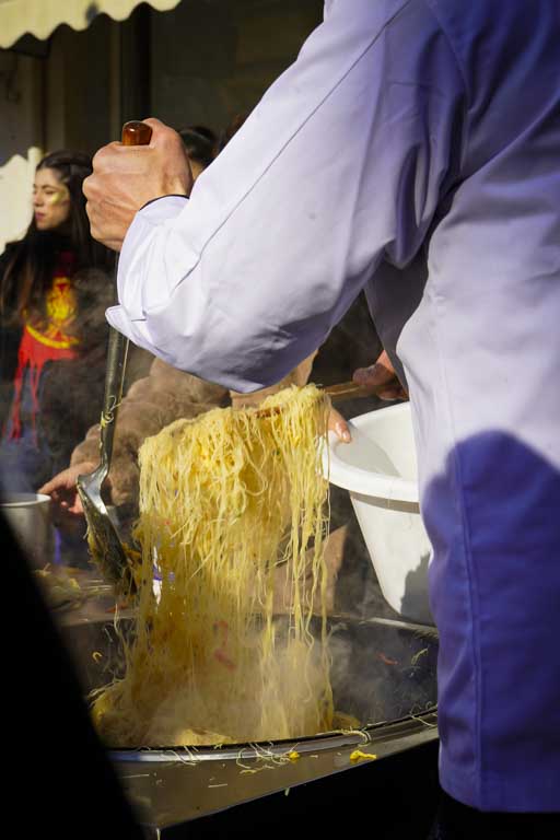 Από νωρίς το πρωί, η οδός Αισώπου έχει φορέσει τα γιορτινά της, με πλήθος κόσμου να είναι συγκεντρωμένο στο σημείο, ενώ έχει στηθεί και μια μεγάλη εξέδρα για μουσική και χορό.