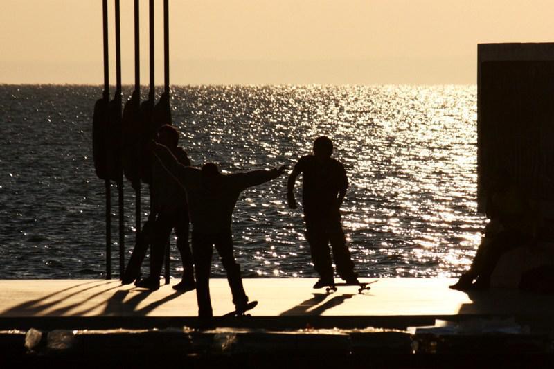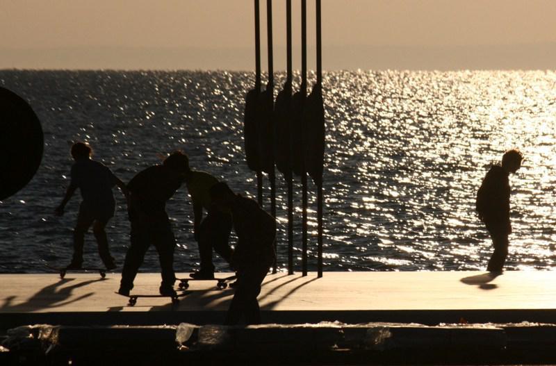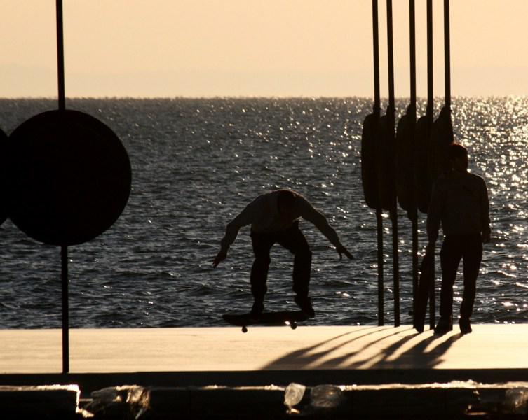 Όσο θυμάμαι τον εαυτό μου να περνάει απ τα μάρμαρα γύρω απ το άγαλμα του Μεγάλου Αλεξάνδρου, άλλο τόσο θυμάμαι να βλέπω εκεί σκεϊτάδες και BMXάδες. Ακόμα η παραλία δεν παραδόθηκε, αλλά προχθές μερικοί προφανώς δεν άντεξαν την αναμονή και πλημμύρισαν τα εν λόγω μάρμαρα με τις σανίδες τους. Ωραία εικόνα, μου είχε λείψει. Βλέποντας τους είναι για μένα σαν να άνοιξε ήδη η Νέα Παραλία.