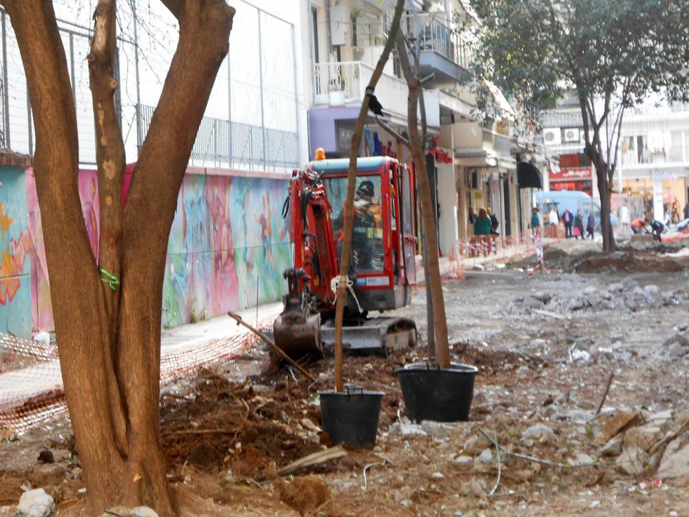 Ο μεγάλος κέδρος στην Αγίας Θεοδώρας θα παραμείνει φυσικά στη θέση του όπως είχε οριστεί από την αρχή, ένα μικρό έλατο από την Γεωργίου Σταύρου επίσης μεταφέρθηκε ενώ ένα φοινικοειδές από την Αγίας Θεοδώρας θα μεταφυτευθεί αλλού, επίσης. Στη φωτογραφία φαίνεται πώς τα μικρότερα λιγούστρα που κλαδεύτηκαν μεταφέρθηκαν σε γλάστρες με σκοπό την μεταφύτευσή τους. Για τα μεγάλα δέντρα όμως η κοπή είναι αναπόφευκτη.