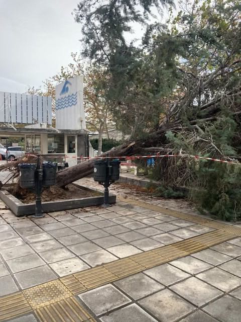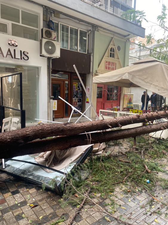 Οι ισχυροί άνεμοι που πνέουν στην πόλη, ήδη από χθες το βράδυ, ευθύνονται για δεκάδες πτώσεις δέντρων, που προκάλεσαν ζημιές κυρίως σε σταθμευμένα οχήματα και υποδομές.