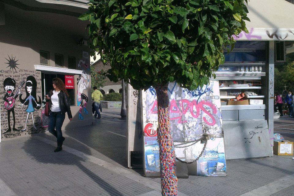 Το γνωστό κατάστημα μας εκπλήσσει ευχάριστα με τις όμορφες και εμπνευσμένες βιτρίνες αλλά και τα γκράφιτι που εναλλάσσει στους τοίχους του. Τα ντυμένα δεντράκια έχουν την δικιά τους ντιζαϊνάτη σημειολογία για τον ερχομό του χειμώνα.