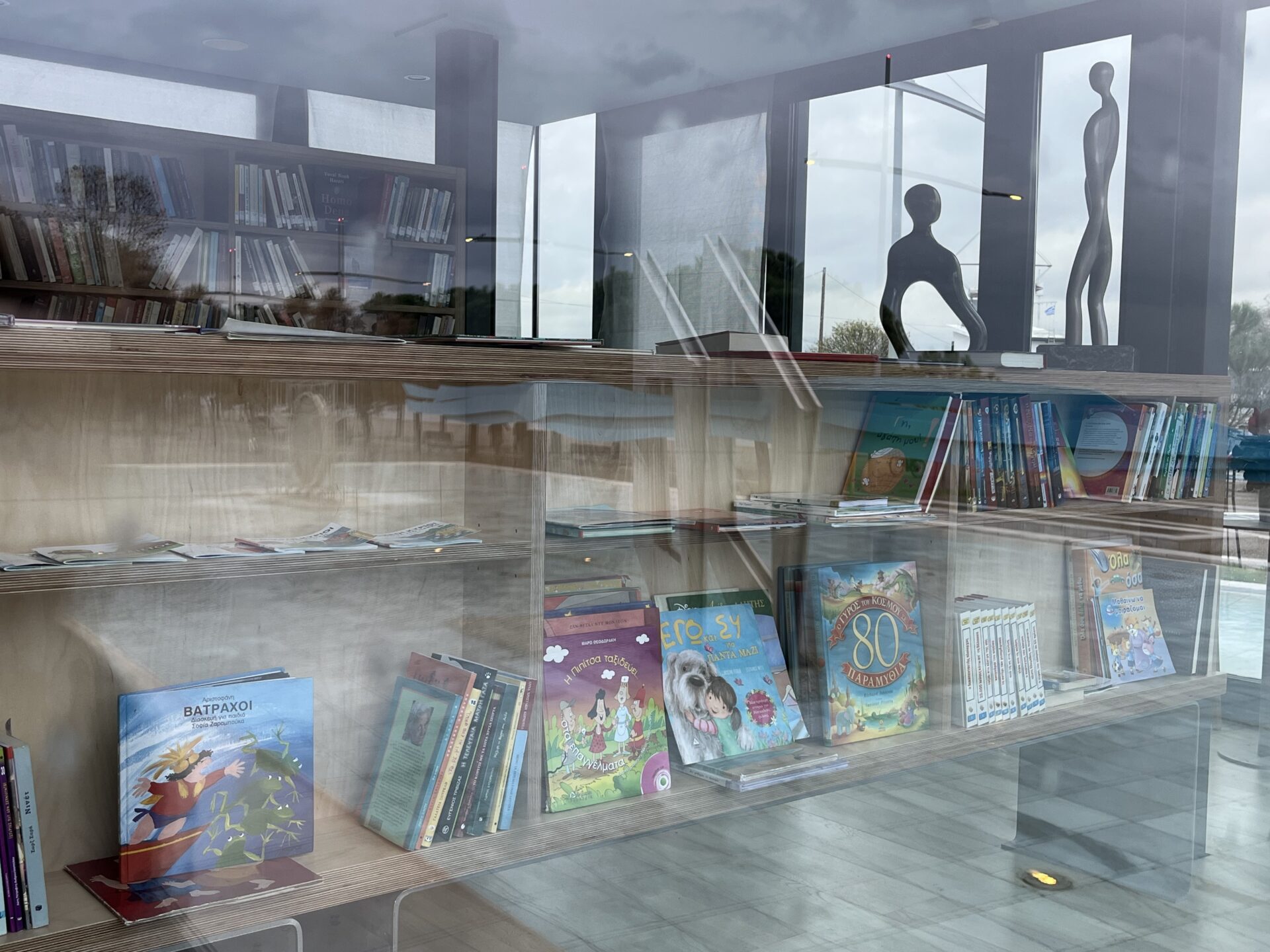 Η νέα Δημοτική ανταλλακτική και δανεική Βιβλιοθήκη έχει ως στόχο οι πολίτες να απολαμβάνουν το ρόφημά τους από τα δίπλα καταστήματα, να δανείζονται ή να ανταλλάσσουν ένα βιβλίο και να διαβάζουν ανάμεσα στα γλυπτά.