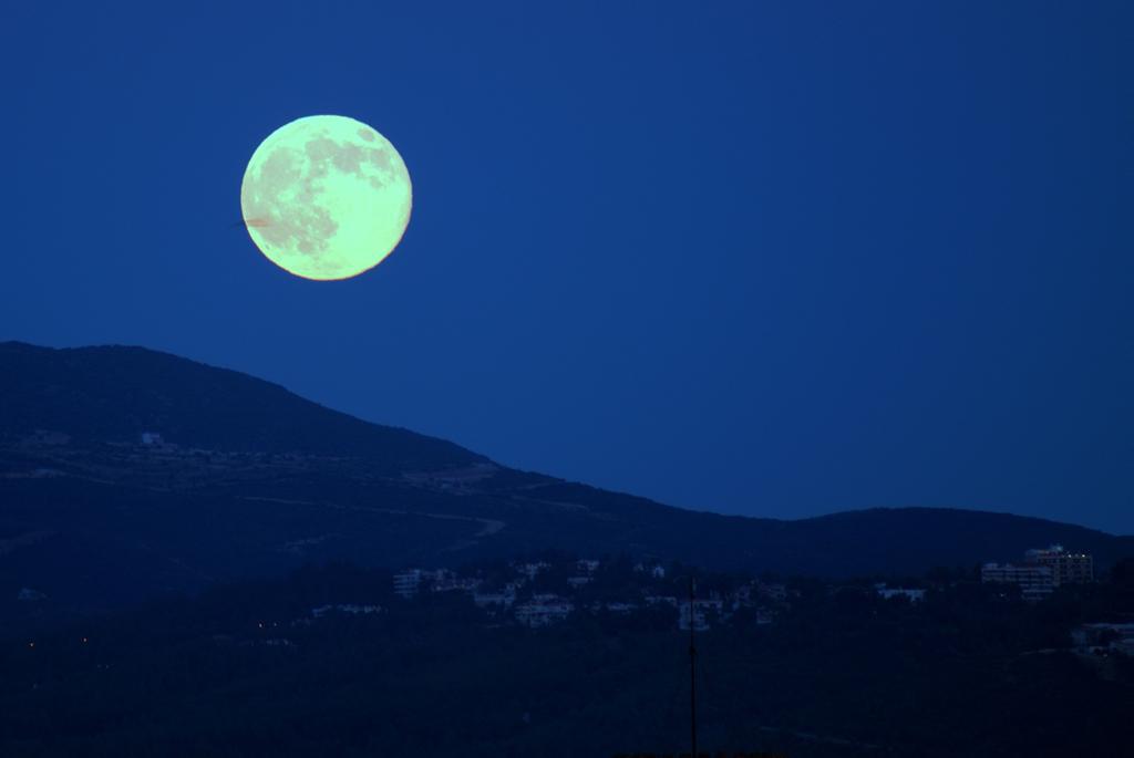 Δείτε την ανατολή της προχθεσινής Πανσέληνου, πίσω απ΄τον Χορτιάτη, καρέ καρέ. Μαγεία.